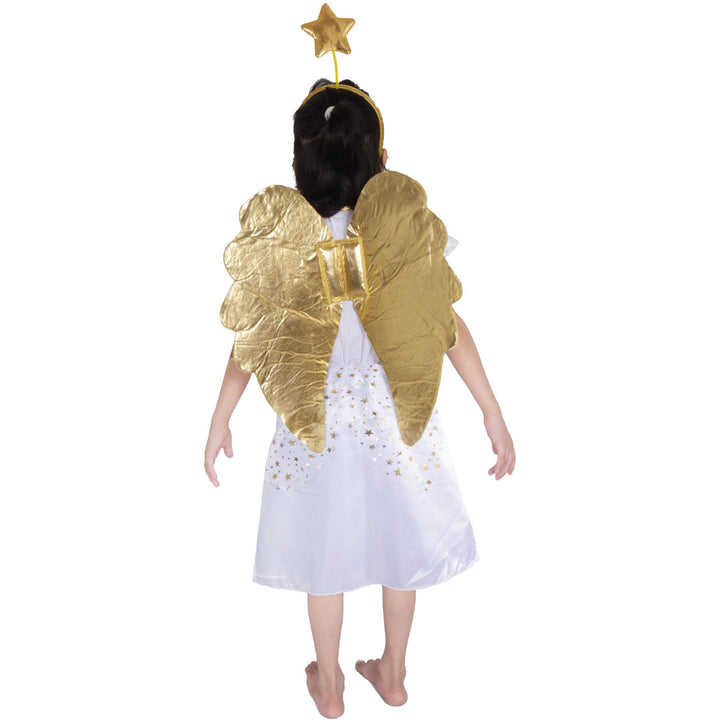 GOLDEN GLORY WITH A TOUCH OF SPARKLE: Our Girls Xmas Nativity Play Angel Outfit comes in a classic and elegant white, reminiscent of heavenly serenity. What truly sets it apart is the glittering star adorning the front, adding a touch of celestial glamour to the ensemble. This Outfit brings the divine to life with a touch of sparkle.