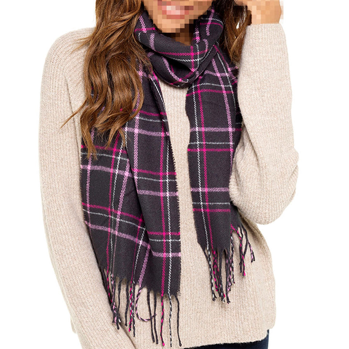 A2Z Ladies Checked Scarf Women Tartan Scarve with Tassels Ring Scarfs Warm Shawl