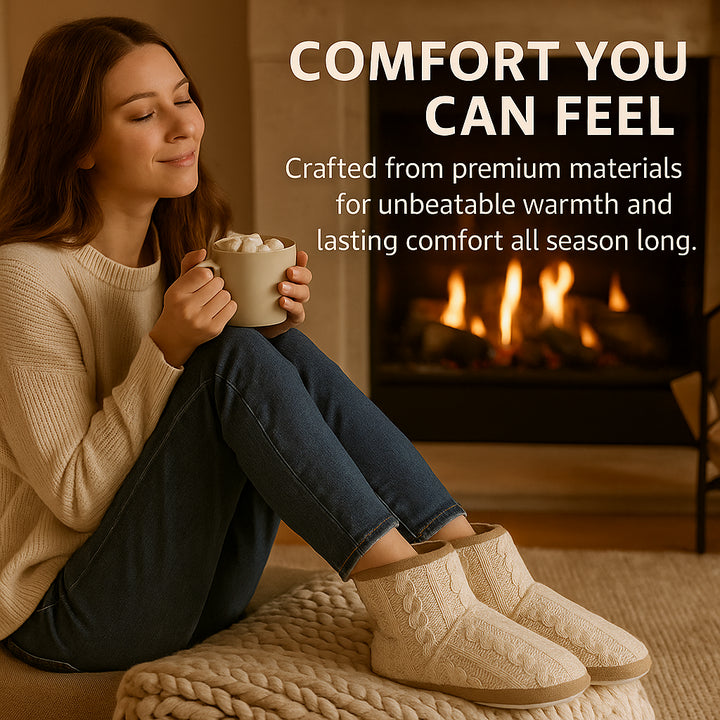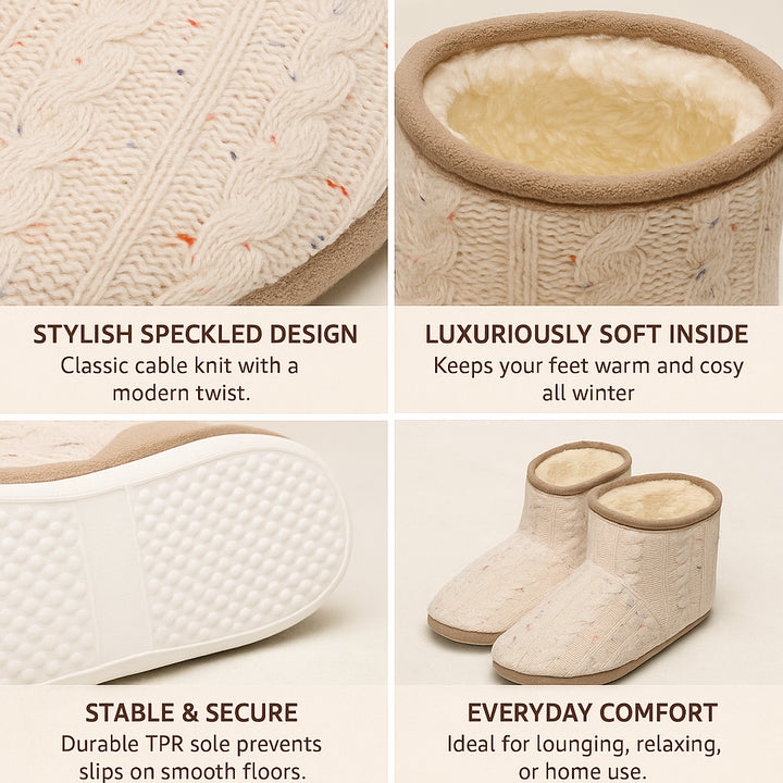 Wrap your feet in comfort with these stylish speckled knit bootie slippers, crafted with a soft cable-knit upper and plush lining for ultimate warmth. Perfect for cold evenings or lazy weekends, these slippers offer the ideal mix of elegance and relaxation for all-day indoor wear.