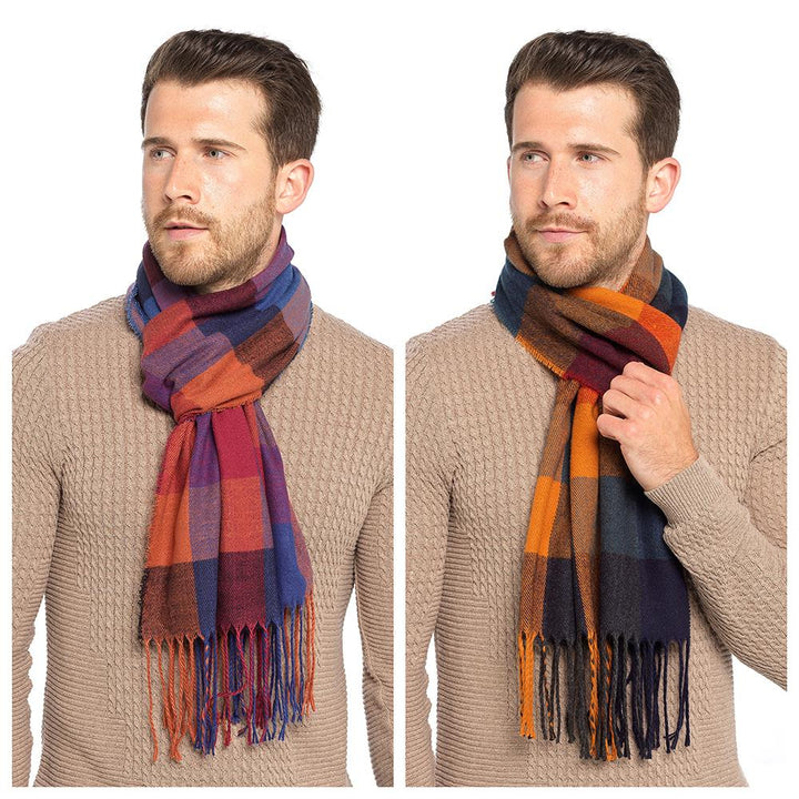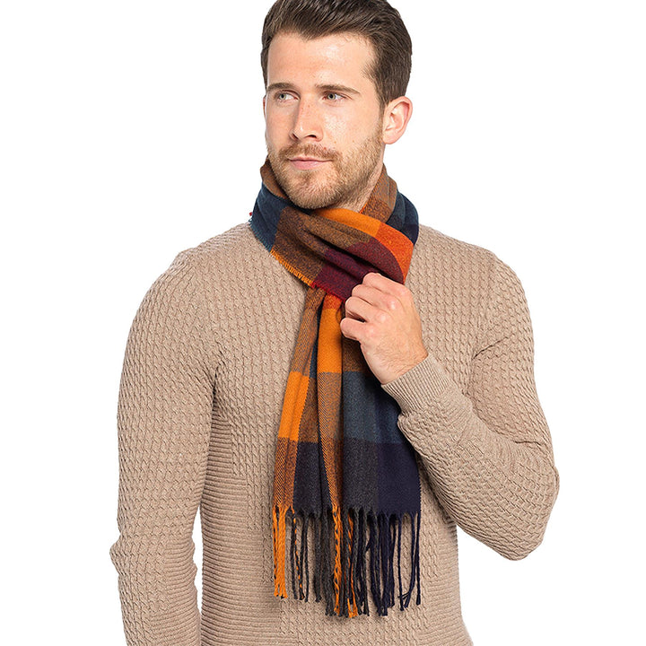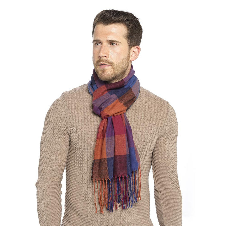 A2Z Men's Checked Scarf Tartan Pattern Soft Winter Wrap with Tassels and Fringe