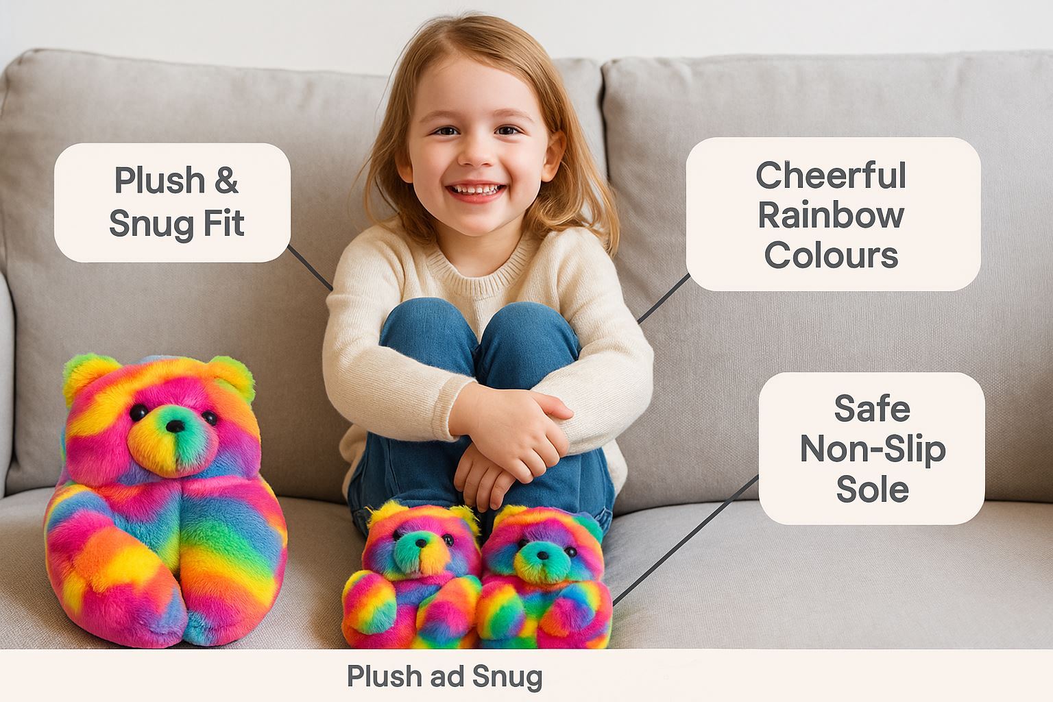 Available in a wide size range for kids and women, these slippers make an excellent present for birthdays, Christmas, or special occasions. The combination of soft plush design, comfort, and rainbow style ensures they’re a thoughtful and fun gift choice for family and friends who love cosy animal slippers.