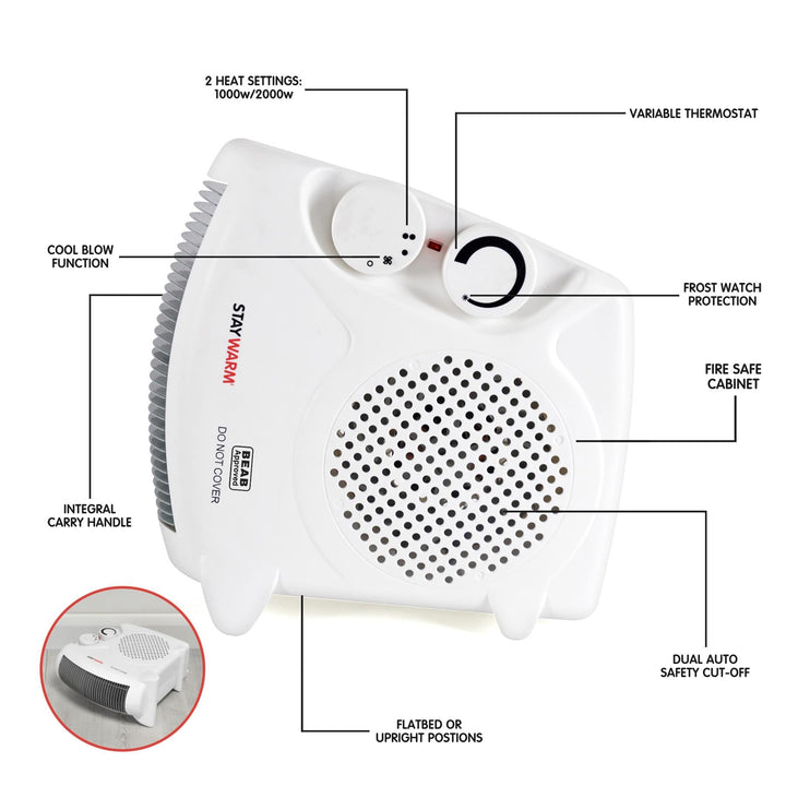 2000w Upright and Flatbed Fan Heater with 2 Heat Settings Cool Blow Fan Variable