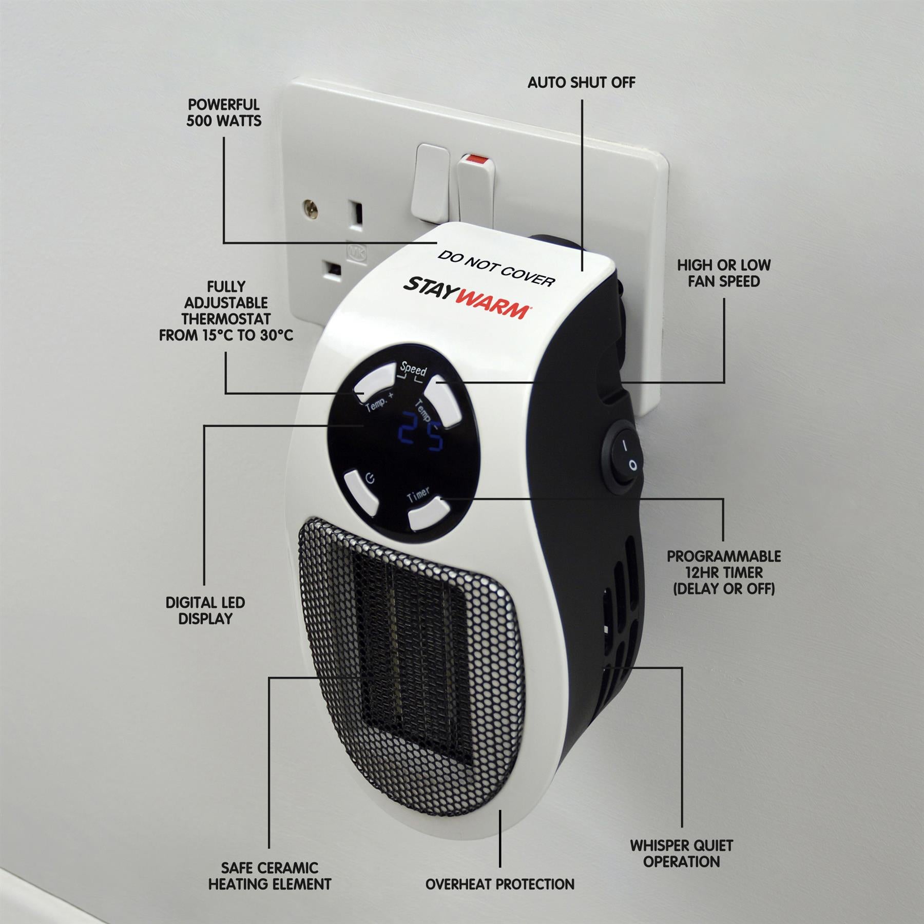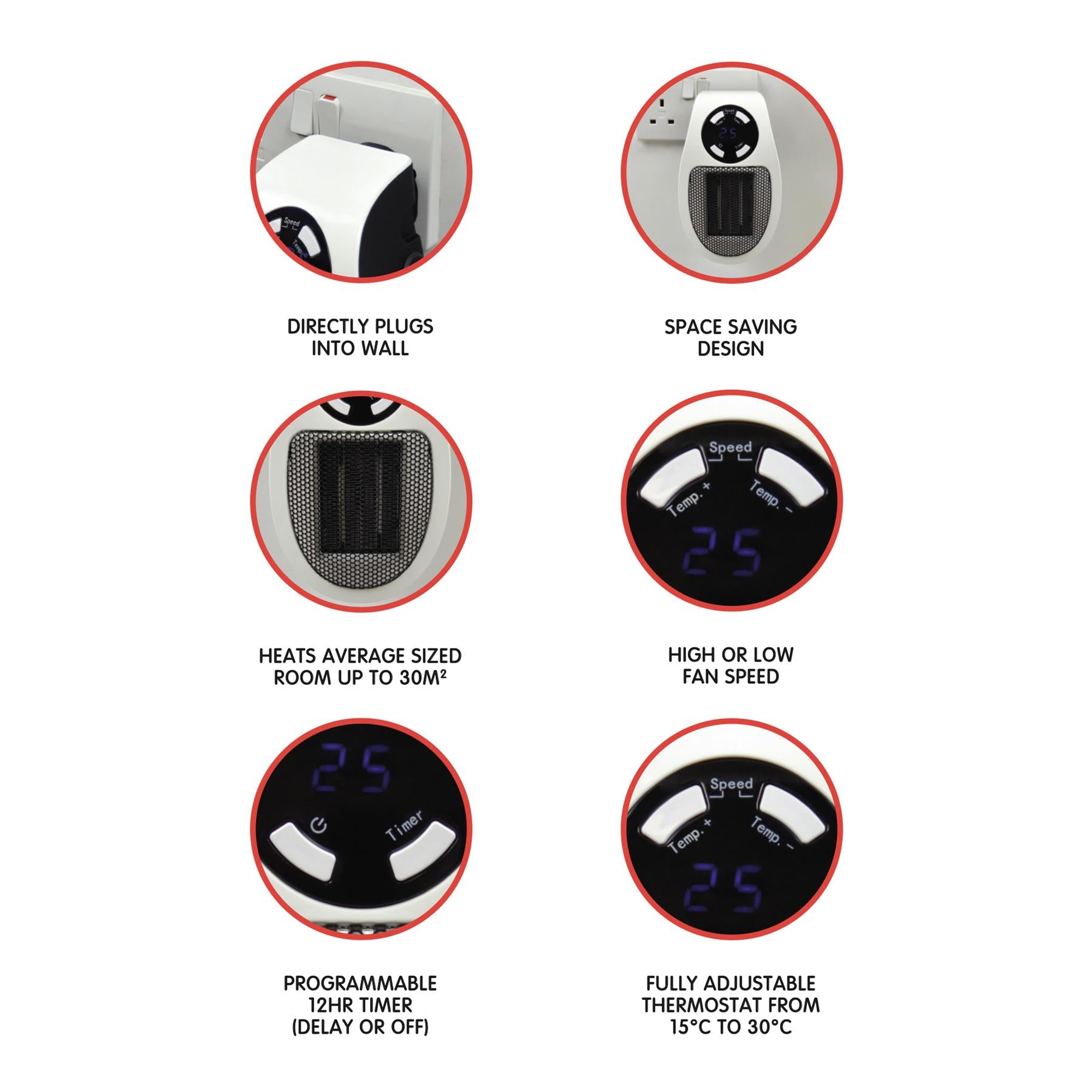 The 500W ceramic PTC heater is designed to operate with greater energy efficiency compared to conventional heaters. It is designed to be plugged directly into a wall socket, eliminating the need for messy leads or wires. -