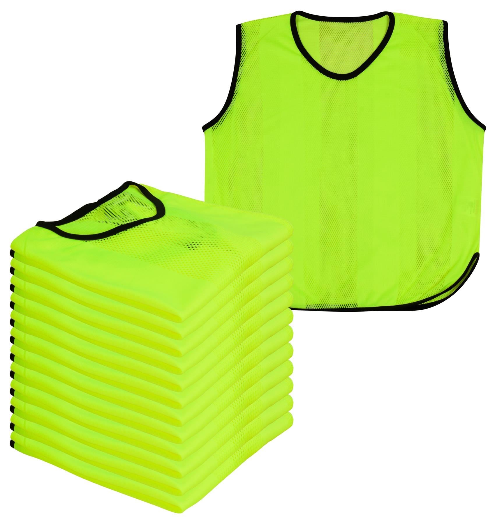 IDEAL OF SPORTS: Perfect for various team sports such as football, basketball, baseball, handball, volleyball, rugby, and hockey, these training bibs are essential for games, competitions, events, and team training sessions. Whether it's for school sports, family games, or team trips, sports t-shirts serve as invaluable tools for coaches and players alike, aiding in team differentiation and player identification during matches and training sessions. HIGH-QUALITY MATERIAL: Crafted from 100% polyester mesh fabric, our sports bibs offer a comfortable and breathable fit. They ensure optimal ventilation to keep players feeling fresh and prevent skin irritation during exercise. The polyester mesh material not only provides comfort but also aids in regulating body temperature, which is crucial during intense sports drills and training sessions. ENHANCED COMFORT AND DURABILITY: Experience enhanced comfort and durability with our meticulously designed sports bibs, offering the perfect balance of resilience and comfort. Crafted with durability in mind and featuring breathable material, our bibs ensure athletes of all ages can wear them for extended periods without discomfort, allowing them to perform at their peak on the field with confidence. LIGHTWEIGHT AND BRIGHT: Experience lightweight comfort with our Sports Bibs, designed for all-day wear without discomfort. Crafted from breathable mesh, they keep you cool and focused during activities. Available in vibrant fluorescent colours, these bibs enhance safety and coordination by making your team highly visible on the field. Versatile for various occasions, their bright colours add a stylish touch, ensuring you stand out wherever you go. AVAILABILITY: AVAILABILITY: Discover the perfect blend of simplicity and sophistication with our range of timeless colours: Neon Orange, Neon Yellow, Neon Green, Blue, Black, and Red. Available in sizes tailored for 5-8 years, 9-14 years, S-M-L And XL-2XL.