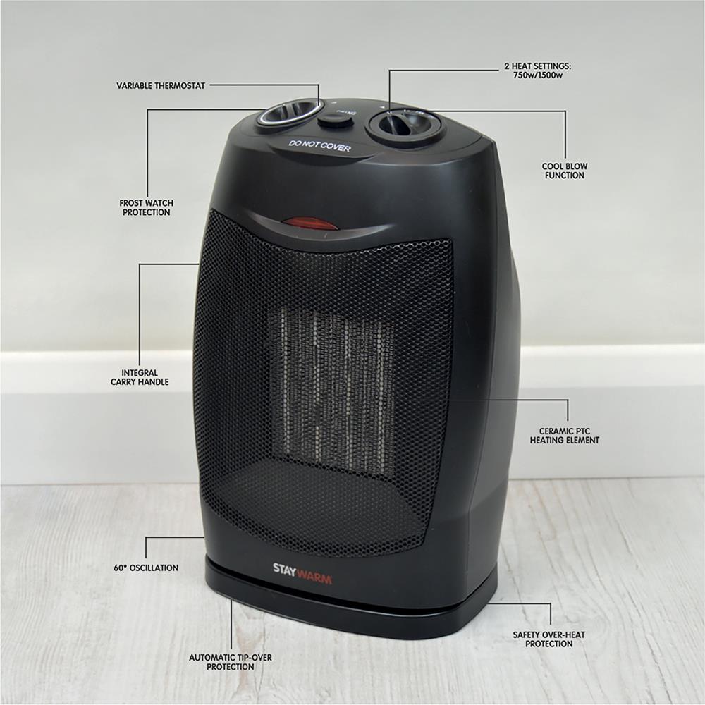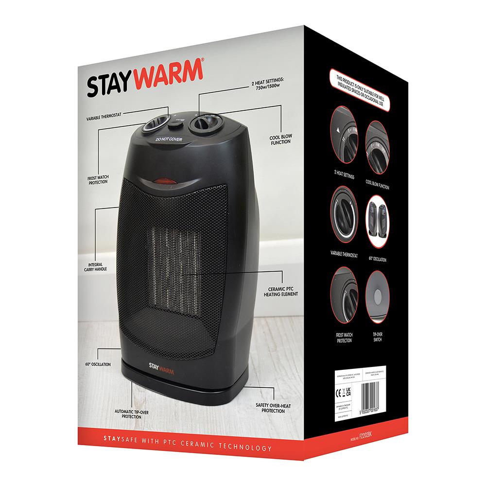 Uses advanced ceramic heating technology to provide quicker and more efficient heating than traditional heaters. Keep warm during the winter or on those chilly nights with our StayWarm Ceramic Fan Heater. -