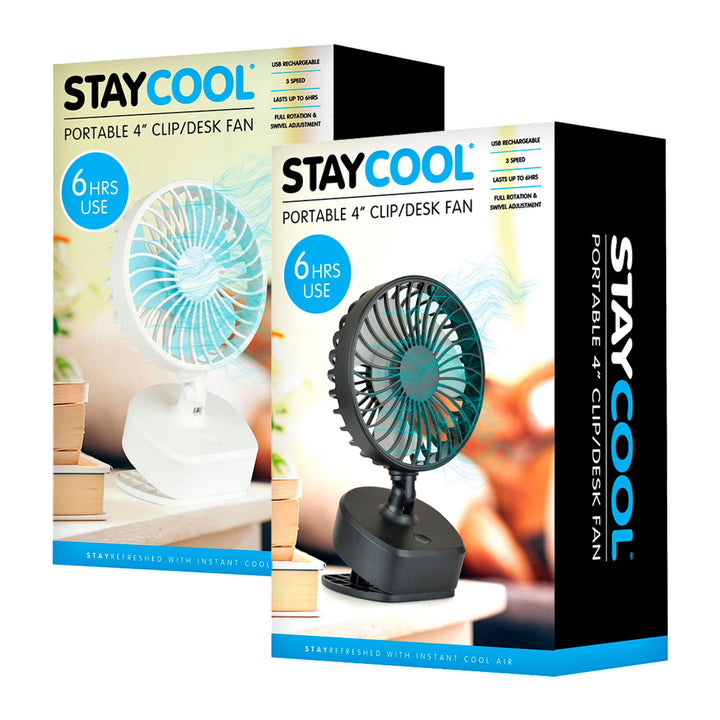 A2Z 4 Inch Portable Mini Fan USB Rechargeable 3 Speed Travel Prams Desk Clip Fan