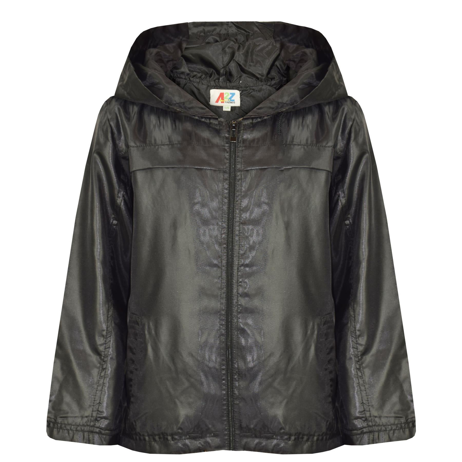 A2Z 4 Kids® Girls Boys Raincoats Jackets Kids Black Lightweight Kag Mac Waterproof Hooded Jacket Cagoule Rain Mac Age 5 6 7 8 9 10 11 12 13 Years