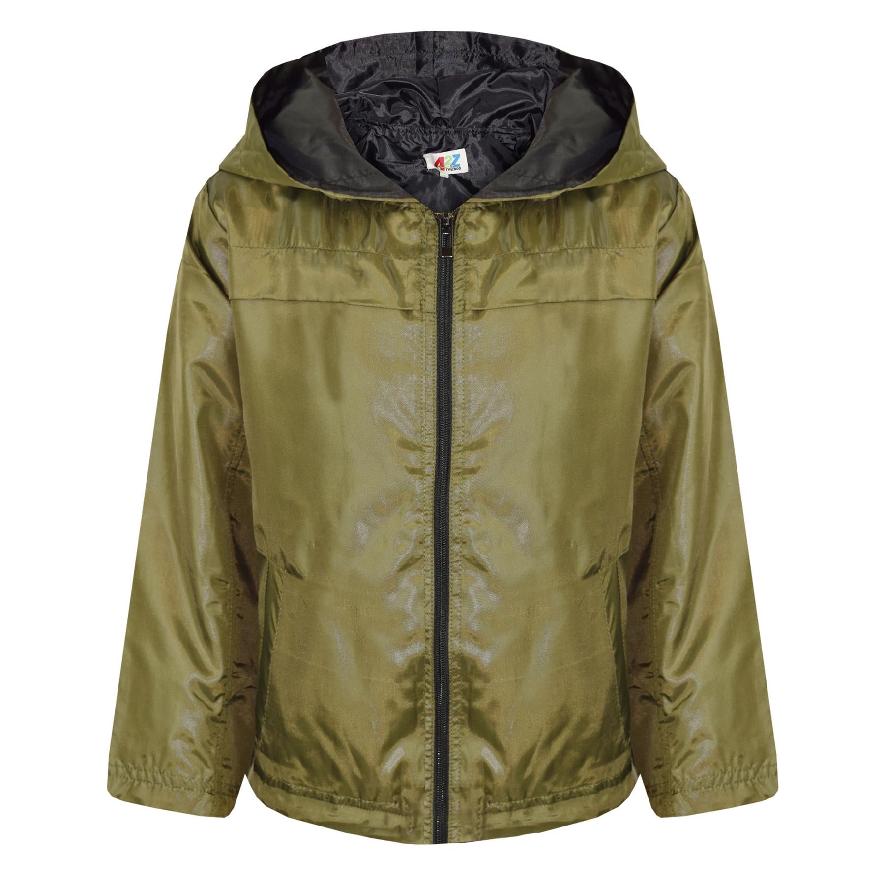 A2Z 4 Kids® Girls Boys Raincoats Jackets Kids Olive Lightweight Kag Mac Waterproof Hooded Jacket Cagoule Rain Mac Age 5 6 7 8 9 10 11 12 13 Years
