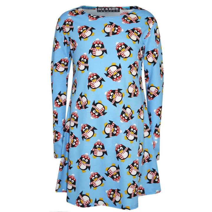 A2Z 4 Kids® Girls Christmas Dress Kids Penguin Print New Xmas Fashion Dresses With A Free Xmas Badge New Age 3 4 5 6 7 8 9 10 11 12 13 Years