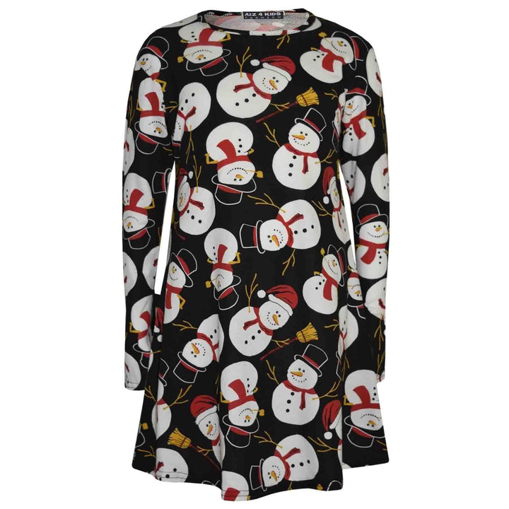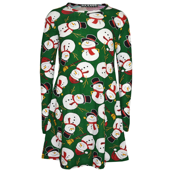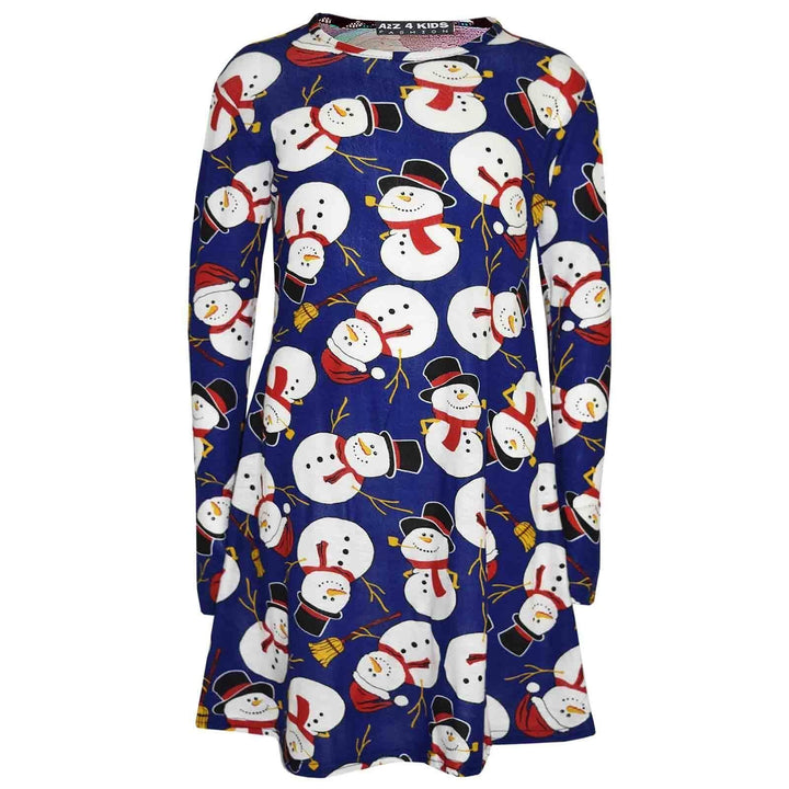 A2Z 4 Kids® Girls Christmas Dress Kids Snowman Print New Xmas Fashion Dresses With A Free Xmas Badge New Age 3 4 5 6 7 8 9 10 11 12 13 Years