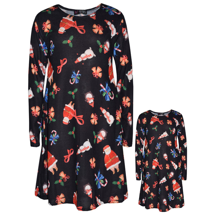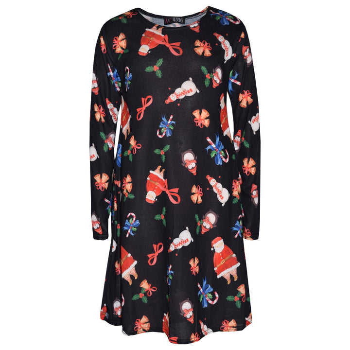 A2Z 4 Kids® Girls Xmas Dress Kids Jingle Bells Santa Claus Snowman Penguin Print Christmass Dresses With A Free Xmas Badge New Age 2 3 4 5 6 7 8 9 10 11 12 13 Years