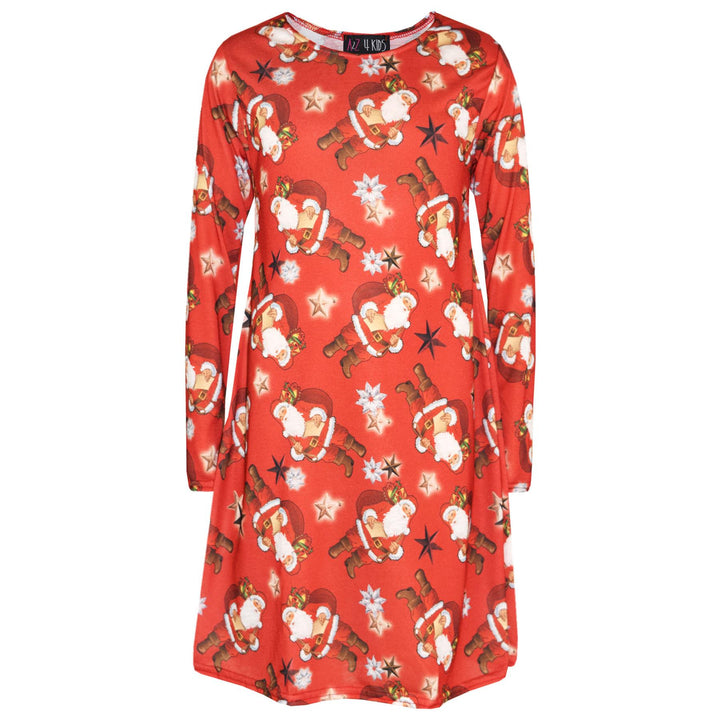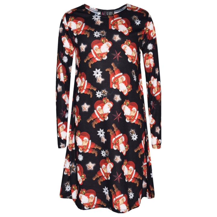 A2Z 4 Kids® Girls Xmas Dress Kids Santa Claus Gifts & Stars Print Christmass Dresses With A Free Xmas Badge New Age 2 3 4 5 6 7 8 9 10 11 12 13 Years