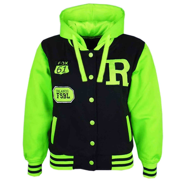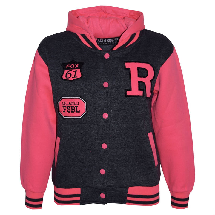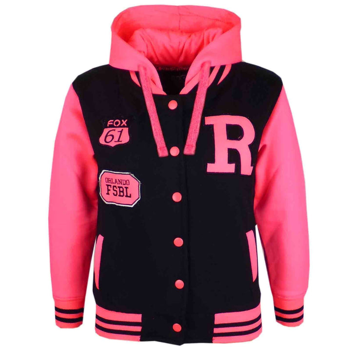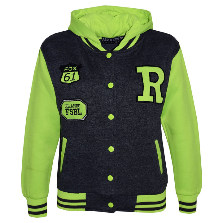 Kids Jacket Girls Boys Baseball Hooded Jacket Varsity Hoodie New Age 2-13 Years