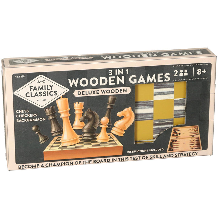 A2Z 4 KIDS 3 in 1 Folding Wooden Games Set Chess Checkers & Backgammon Game Set