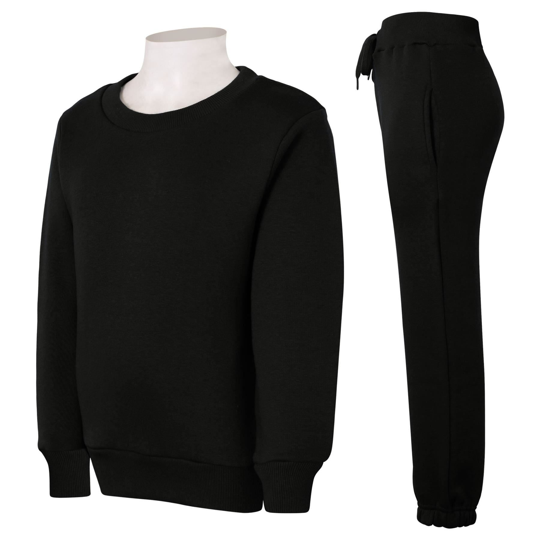 A2Z 4 Kids Black Tracksuit Jumper Sweatshirt Set with Jogger Bottoms PE School Sports Activewear Set Girls Boys Children Age 2-13 years