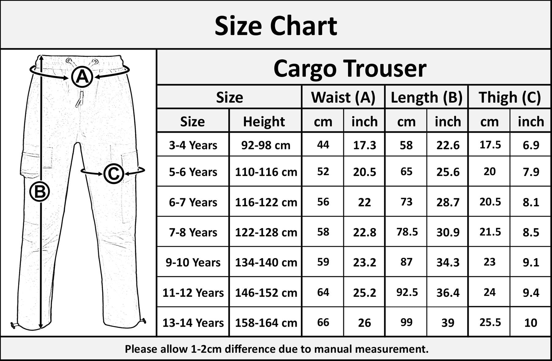 AVAILABLE SIZES: 3-4 Years, 5-6 Years, 6-7 Years, 7-8 Years, 9-10 Years, 11-12 Years and 13-14 Years.