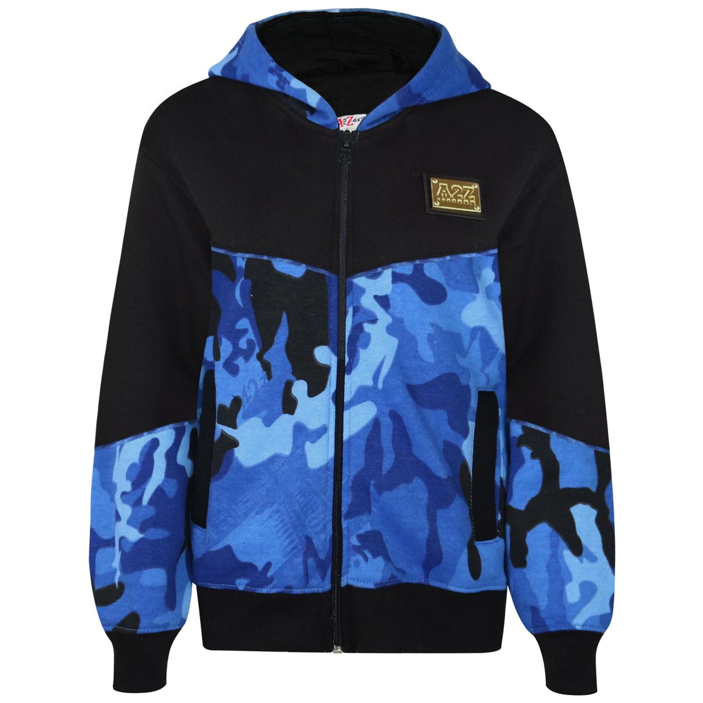 A2Z 4 Kids Boys Girls Cotton Tracksuit Camouflage Blue Fleece Hoodie Top Joggers Bottom Suit Set Age 5-13 years