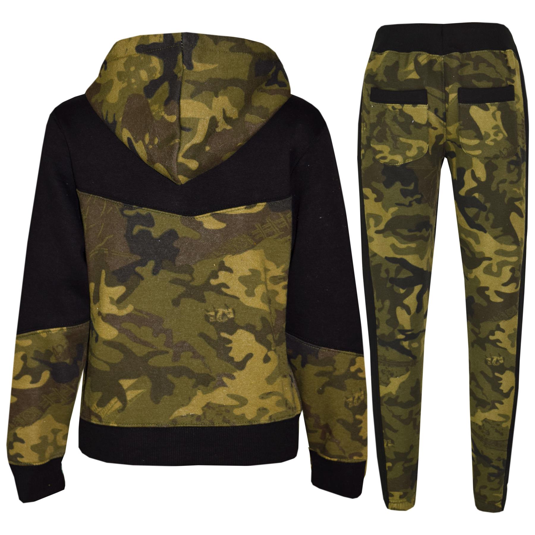 A2Z 4 Kids Boys Girls Cotton Tracksuit Camouflage Green Fleece Hoodie Top Joggers Bottom Suit Set Age 5-13 years