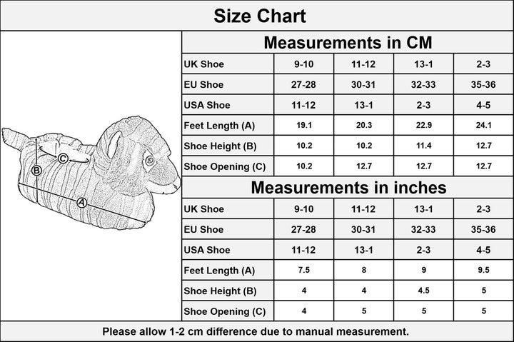 These snuggly Animal Novelty slippers come with cute Seal, Bear, Tiger, Shark, Unicorn, Rhino, Toddler and Koala faces. Available Size: 9-10 UK Child (Small), 11-12 UK Child (Medium), UK 13-13.5 UK Child (Large) and 2-3 UK (XL), Please Note: (Our 13-13.5 UK Child size is equivalent to Shoe Size 13 UK Child to 1 UK Adult Shoe Size ).