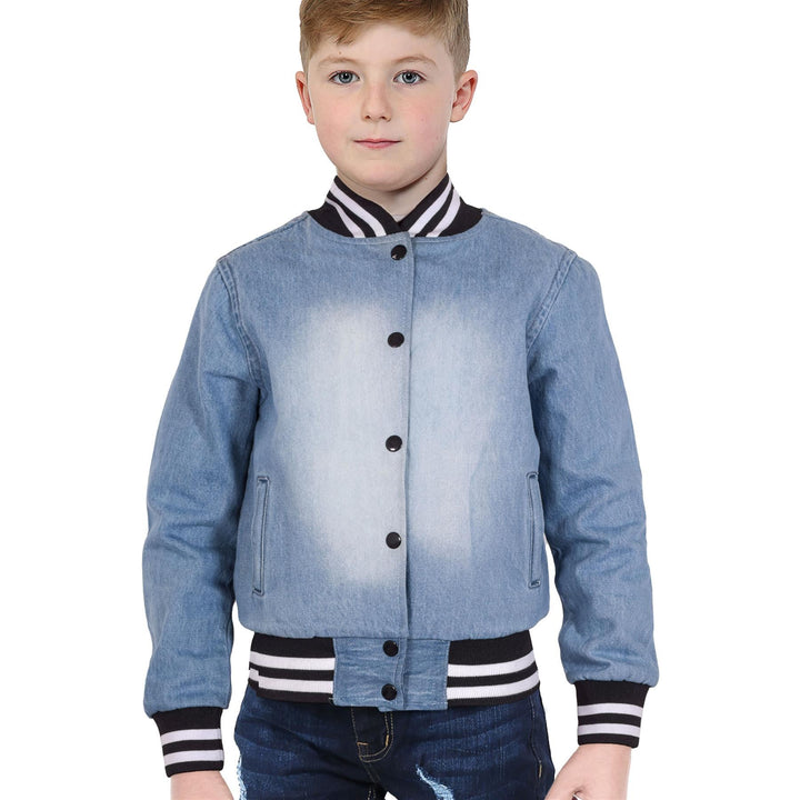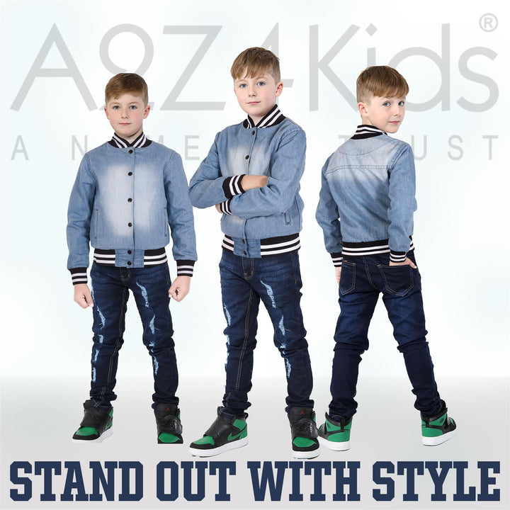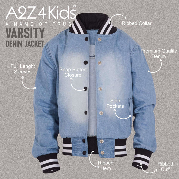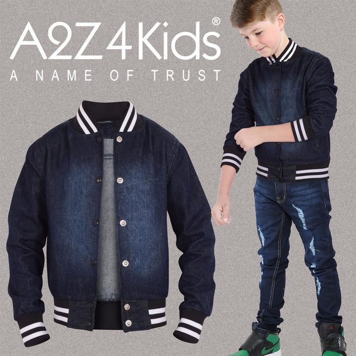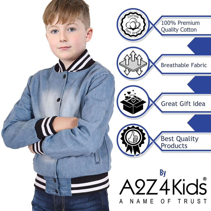 A2Z 4 Kids Boys Girls Ribbed Collar & Cuffs Denim Jacket 100% Cotton Kids Outerwear with Ribbed Hem Snap Button Closure Timeless Fashion for Everyday Adventures