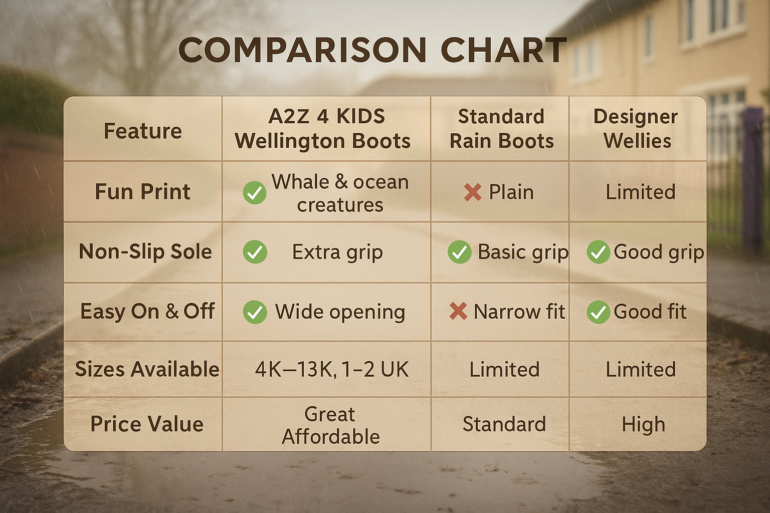 These waterproof Wellington boots are easy to clean and quick to dry, making them ideal for everyday use in all weather. The durable material keeps feet dry while kids jump in puddles, stroll to school, or explore muddy trails.