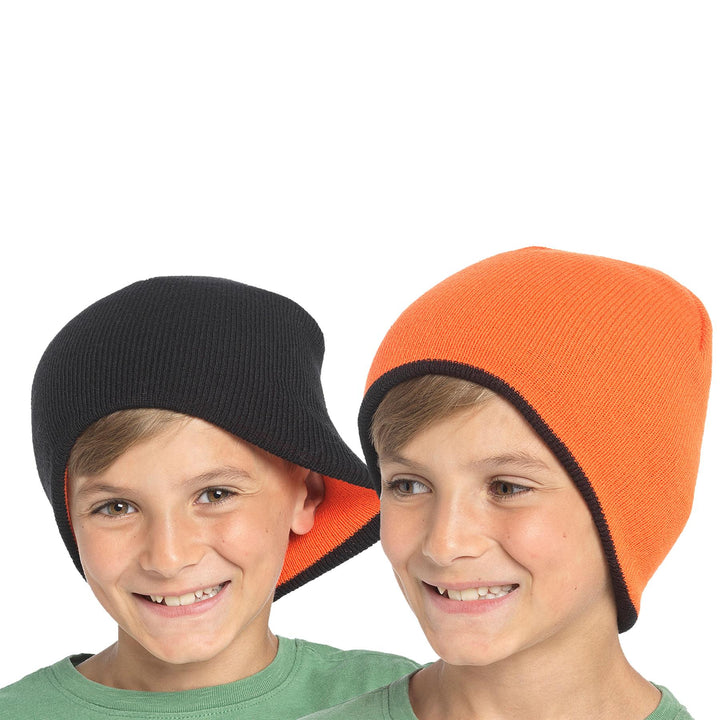 DOUBLE THE FUN WITH REVERSIBLE HAT: Our reversible beanie offers two distinct looks in a single design. This innovative accessory adds a playful element to everyday attire while providing warmth and comfort for your child during the cold winter months. It allows you to coordinate with various outfits, ensuring your child remains both cosy and stylish on every outing, thereby standing out in any setting. HIGH-QUALITY MATERIAL: The Warm Winter set is made from breathable 100% acrylic fabric and features a lining composed of 65% polyester and 35% polyethene. This combination ensures that the material is soft, gentle against the skin, and stretchy. Additionally, it includes a soft, fleecy lining. The design prioritizes comfort and is skin-friendly, keeping you warm throughout the winter. COMFORT: These reversible fleece winter beanie hats are constructed from high-quality polar fleece, offering a soft and comfortable feel. They are designed to be thick and windproof while remaining lightweight and flexible, providing an enjoyable and warm wearing experience.Furthermore, these hats are durable, ensuring they can withstand prolonged use over time. OUTDOOR WARM HATS: Winter accessories warm the head and ears. These items ensure comfort during various outdoor activities and everyday tasks. They are particularly beneficial for dog walking, cycling, hiking, motorcycling, fishing, hunting, snowboarding, skiing, attending sporting events, and commuting, among other activities. These accessories are essential for maintaining warmth in cold conditions. AVAILABLE: Are you seeking a cool and stylish accessory to elevate your streetwear look? Check out our reversible hat in various colour combinations, including Black/Green and Black/Orange. Designed with a one-size-fits-all approach, this hat is made from stretchy fibers for added comfort, making it suitable boys.