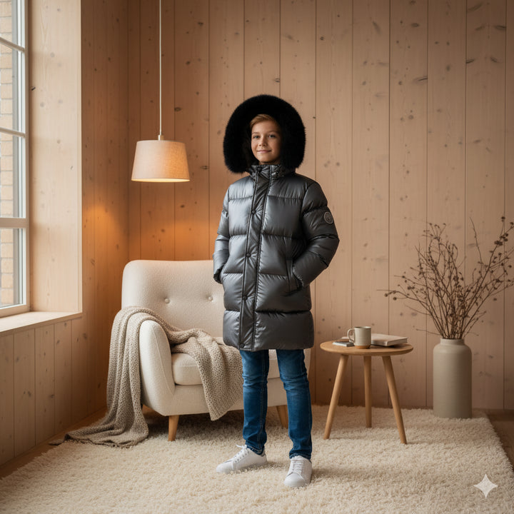 Available in stylish Black Shiny and Sky Blue Shiny, this winter jacket suits children aged 3 to 14 years. The modern glossy look makes it perfect for school, holidays and seasonal outings. A thoughtful and practical gift choice for birthdays, Christmas or winter wardrobe updates for boys of all ages.