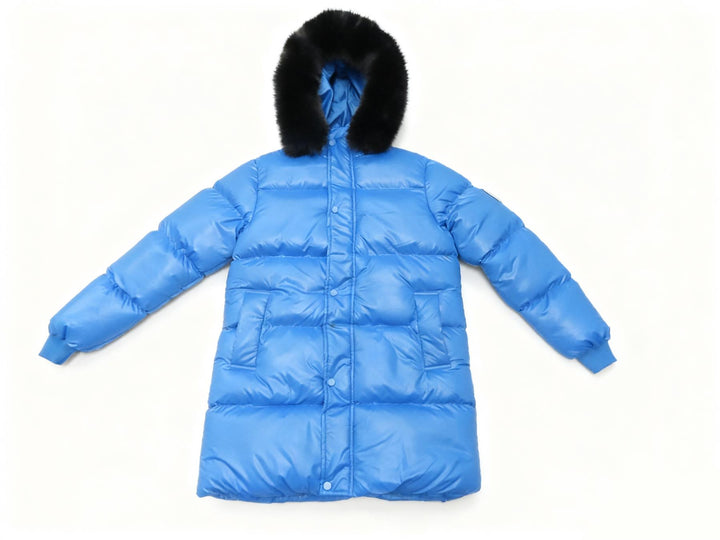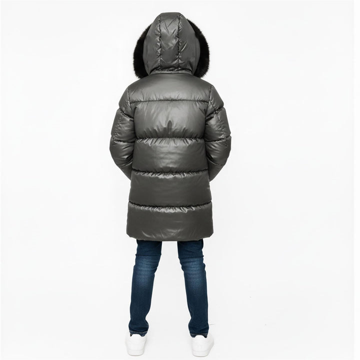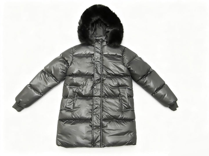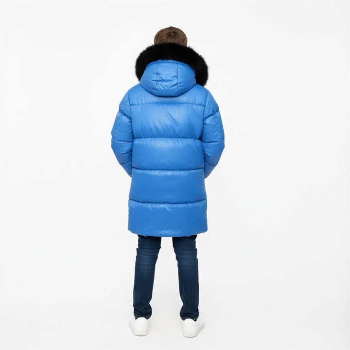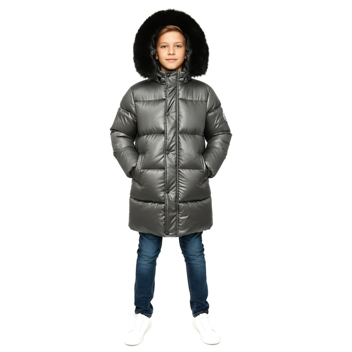 A2Z 4 Kids Boys Long Puffer Coat with Faux Fur Hooded Thick Winter Shiny Jacket