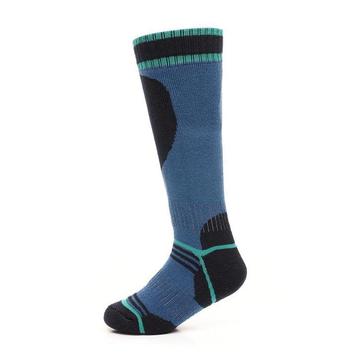 We believe that warmth does not have to come at the expense of style. These thermal ski socks are available in two classic colors: blue and grey. The sleek and timeless designs will complement your child's winter wardrobe while keeping them comfortably warm. -