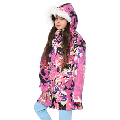A2Z 4 Kids Camouflage Baby Pink Parka Jacket Faux Fur Hooded Coat Drawstring Waist Fashion Girls Age 5-13 Years