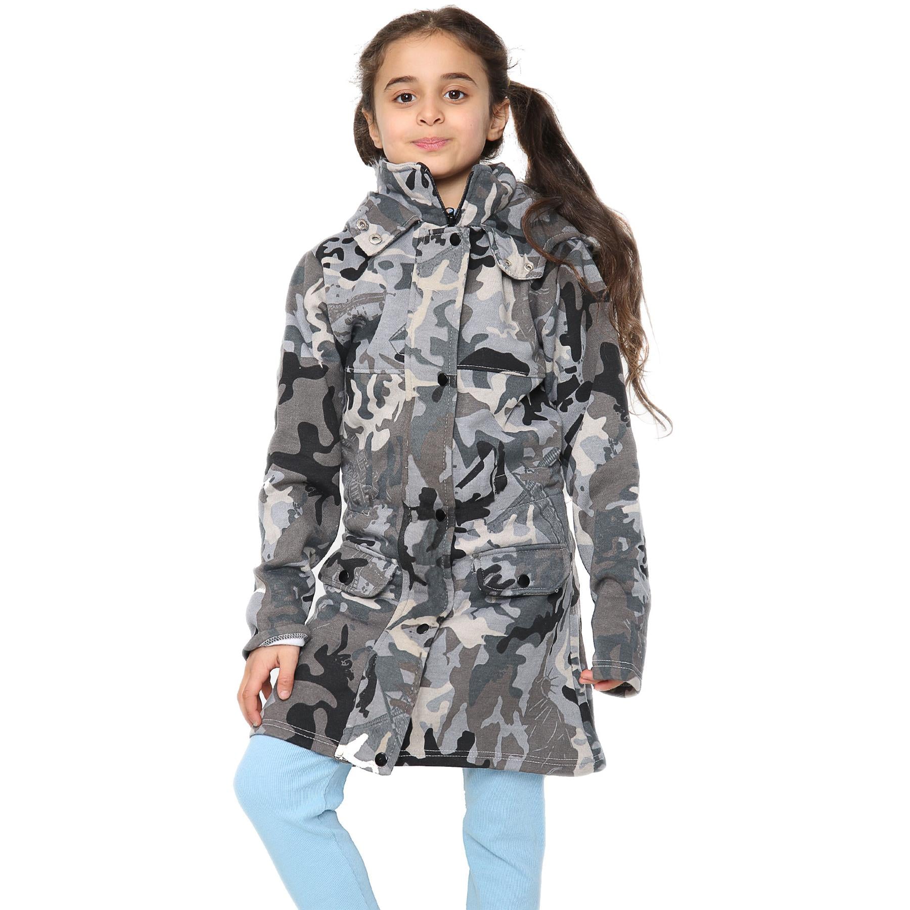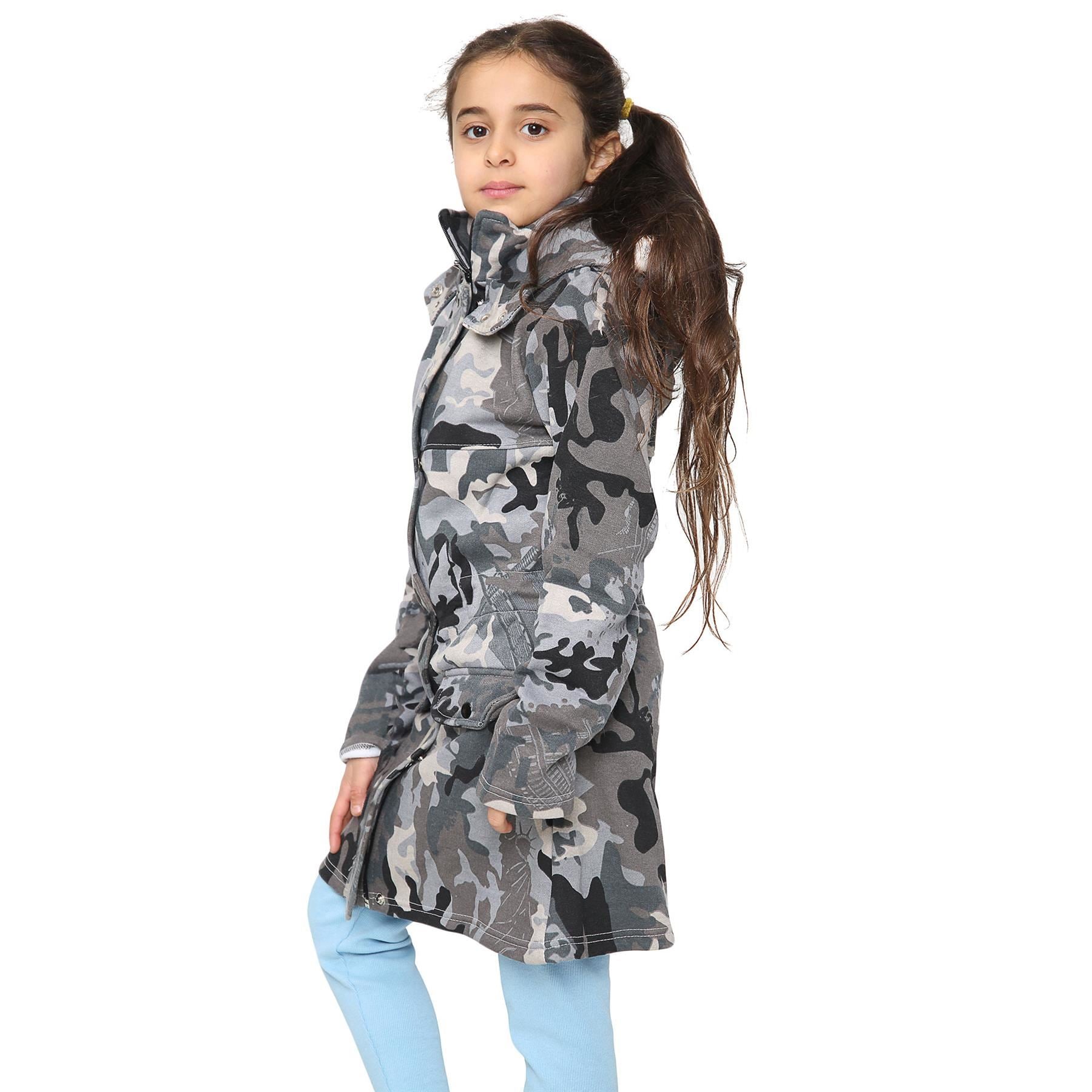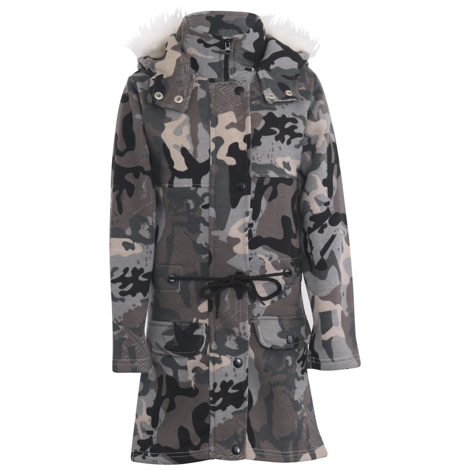 A2Z 4 Kids Camouflage Charcoal Print Parka Jacket Faux Fur Hooded Coat Drawstring Waist Fashion Girls Age 5-13 Years