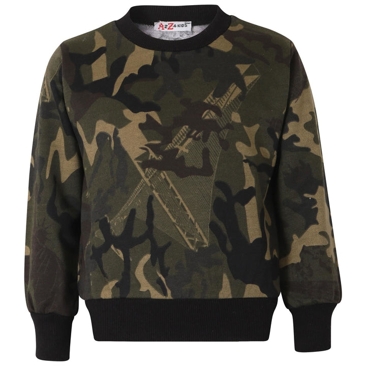 A2Z 4 Kids Camouflage Green Tracksuit Jumper Sweatshirt Set with Jogger Bottoms PE School Sports Activewear Set Girls Boys Children Age 2-13 years