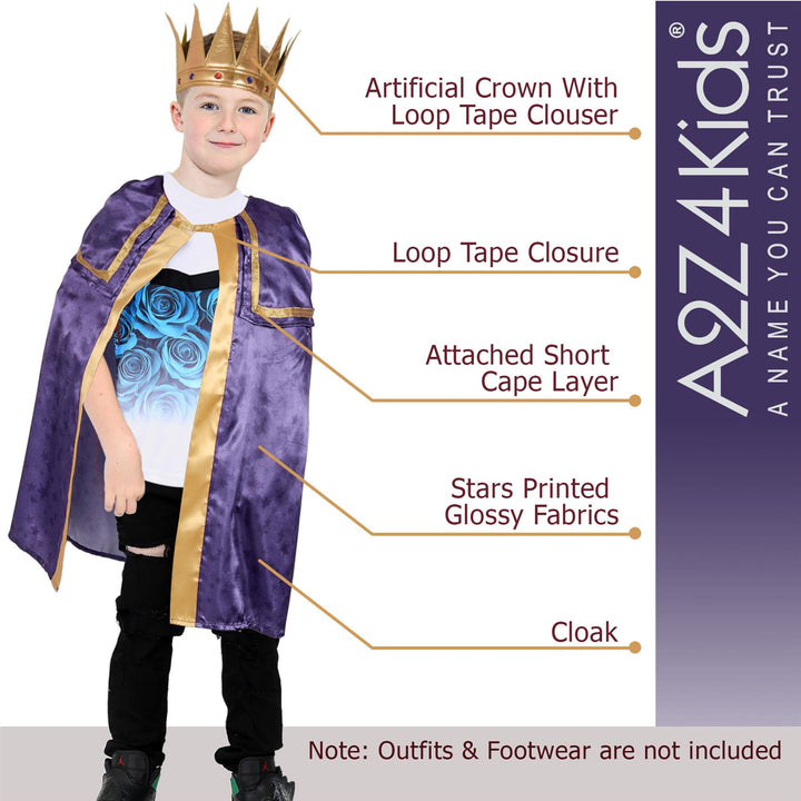A2Z 4 Kids Christmas King Attire Xmas Nativity Three Kings Wise Man Outfit Nativity School Plays Xmas Fancy Dress for Boys Age 3-14 Years