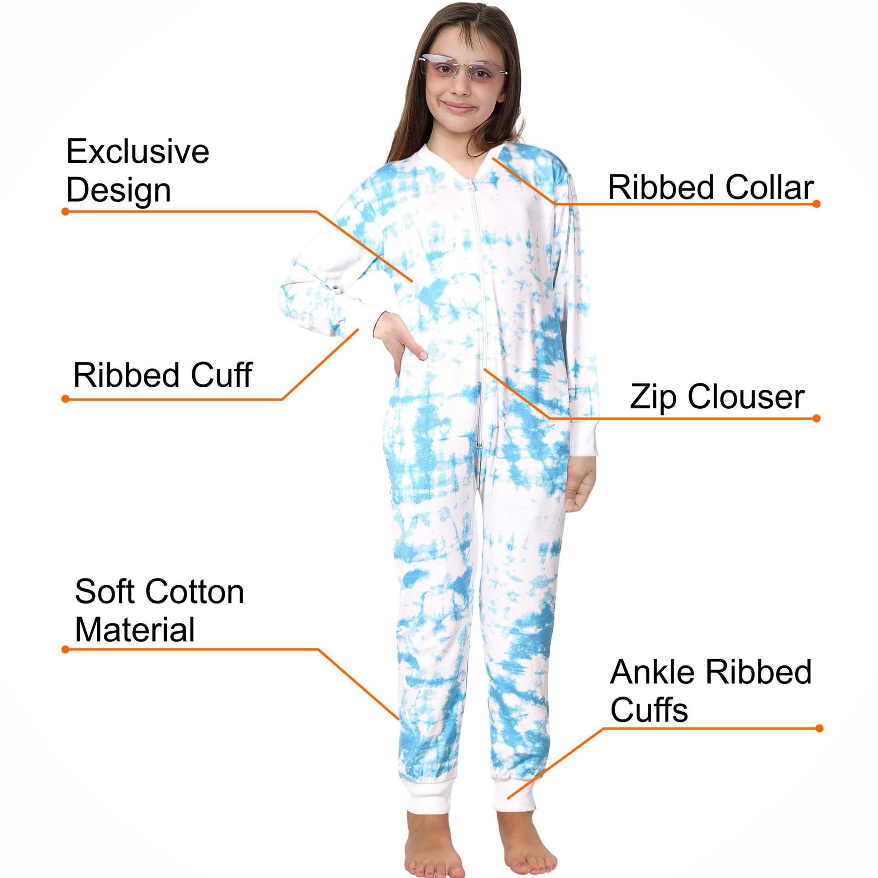 A2Z 4 Kids Cotton Onesie for Kids Onesie Pyjamas Lounge Wear Blue Tie Dye Printed Sleepsuit Comfy Gifts for Children Girls Age 5-6, 7-8, 9-10, 11-12 & 13