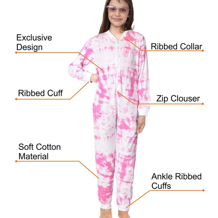 A2Z 4 Kids Cotton Onesie for Kids Onesie Pyjamas Lounge Wear Pink Tie Dye Printed Sleepsuit Comfy Gifts for Children Girls Age 5-6, 7-8, 9-10, 11-12 & 13
