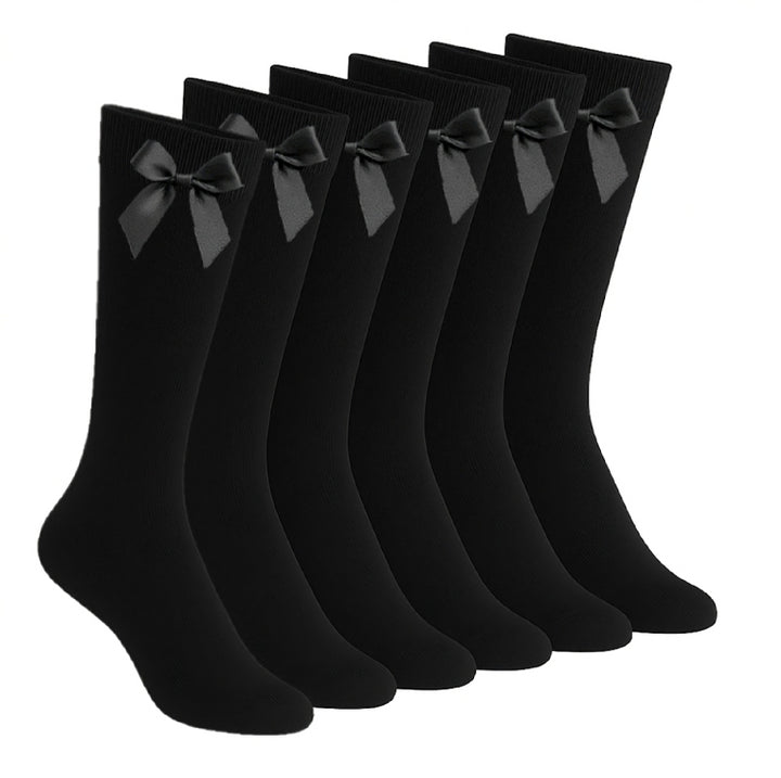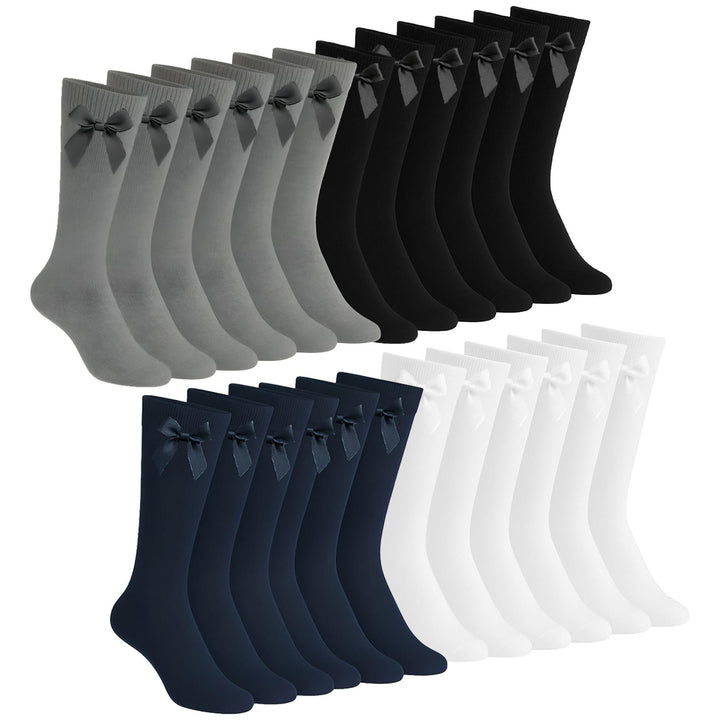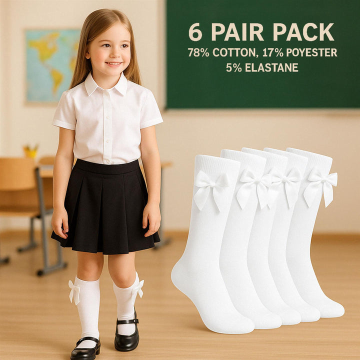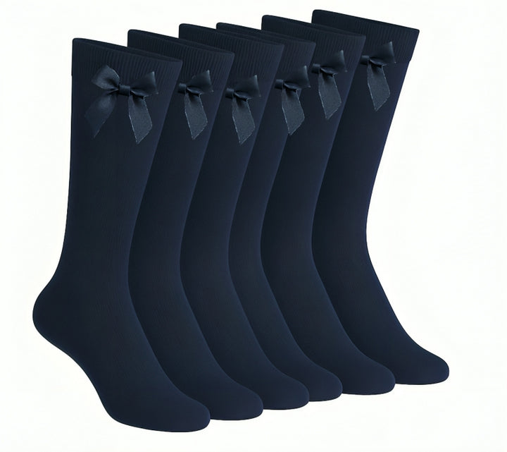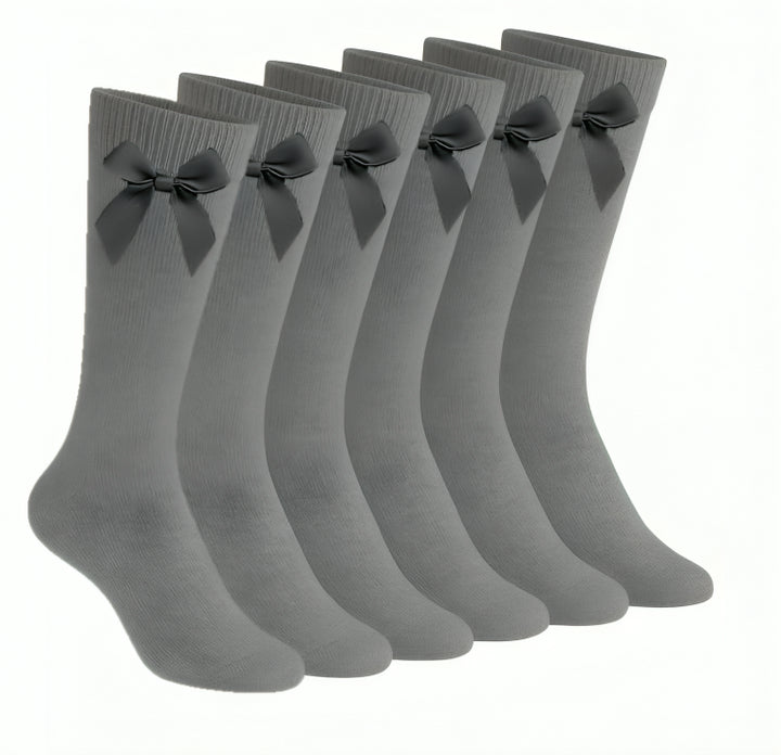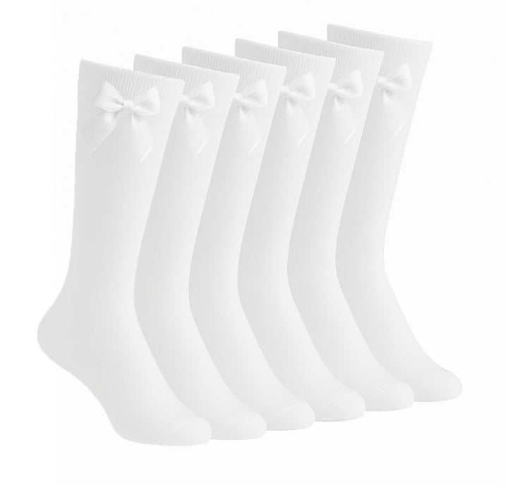 A2Z 4 Kids Girls 6 Pack Plain Knee High Socks With Ribbon Bow School Socks