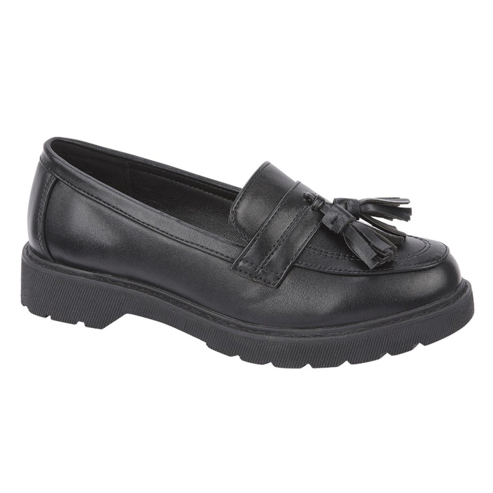 A2Z 4 Kids Girls Black Platform Loafers Moccasins Slipper Faux Leather