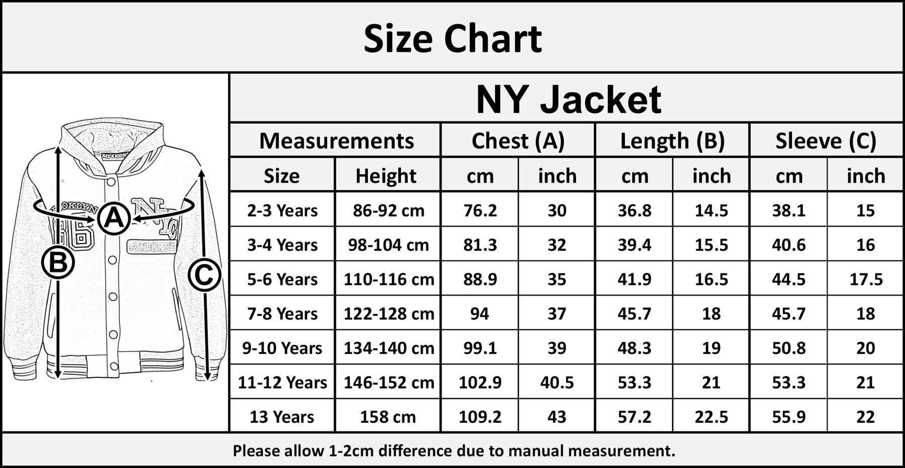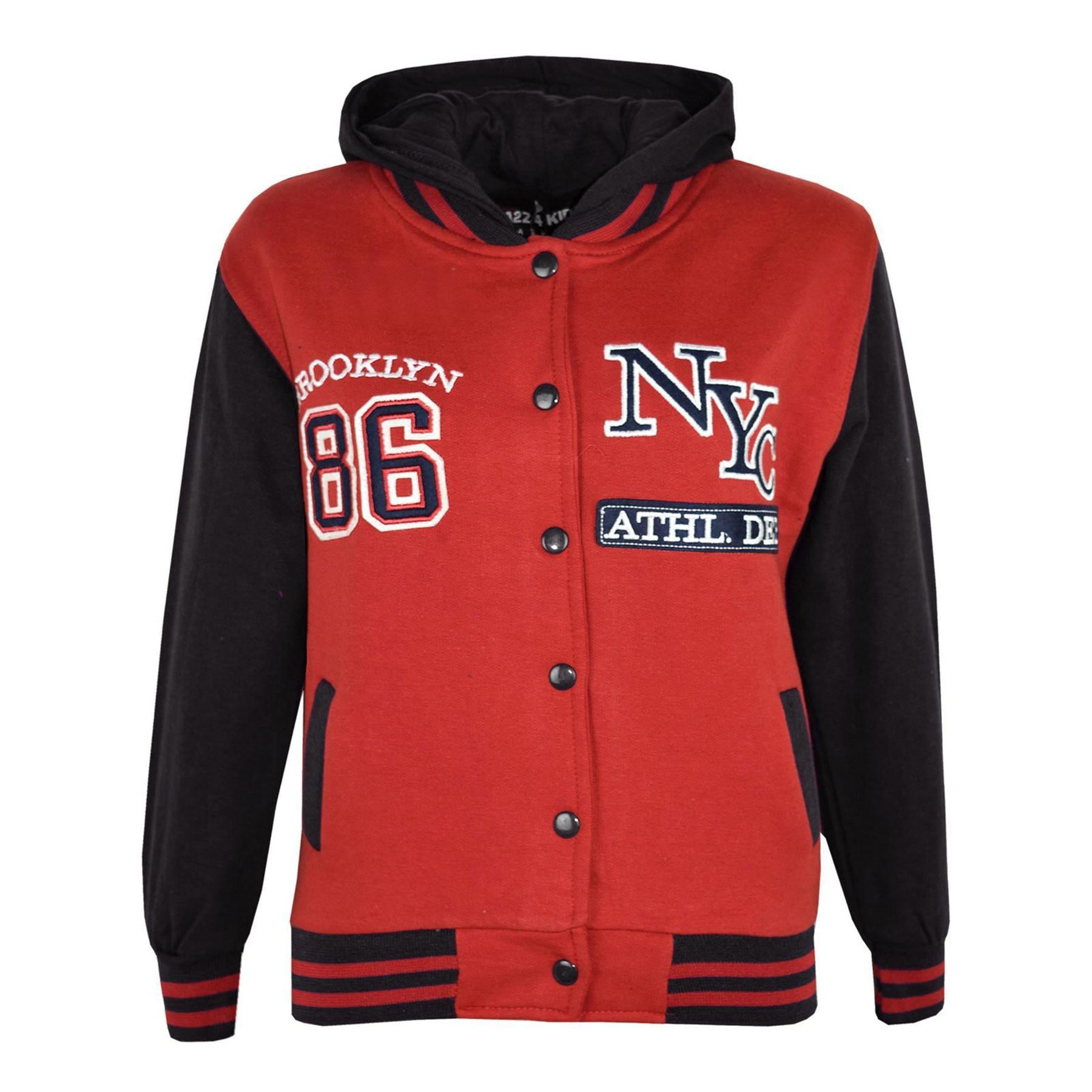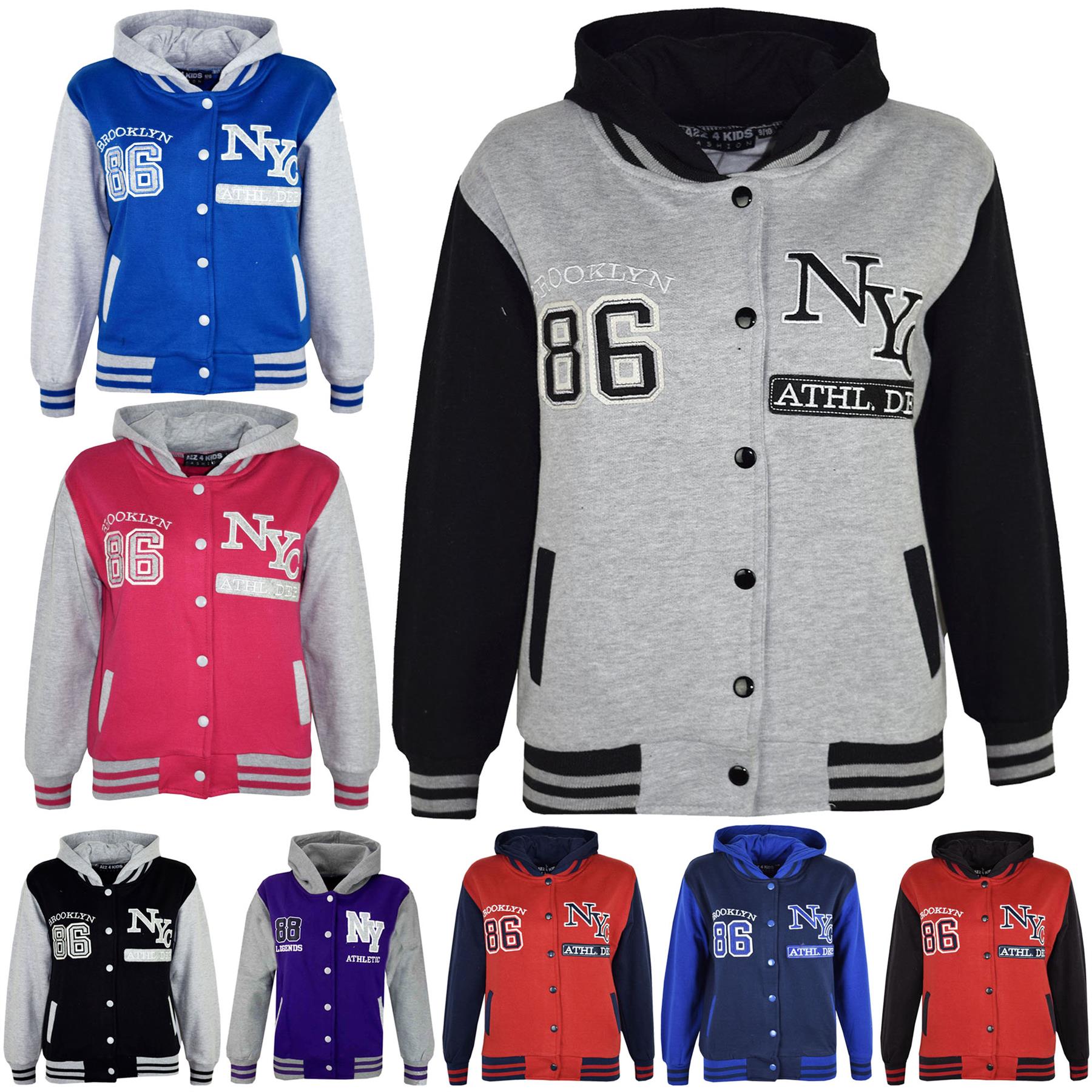 Shop With Confidence Simple Returns 30 Days Returns/Exchanges Accepted ? All Orders Dispatched Within 24 HOURS ? Here Is New Kids Girls Boys Baseball Fashion NYC ATHLETIC 86 BROOKLYN Print Hooded Jacket. Perfect For All Seasons. Snap Button Closing On The Front. Style Hooded Jacket. Ribbed Cuffs and Waist Bands. Knitted Fleece Fabric. Material: 65% Polyester, 35% Cotton. Size Available: 7-13 Years. Available Colors: Black, Royal Blue, Grey Navy, Red & Pink. Thanks For Looking. Check Out My Other Items!
