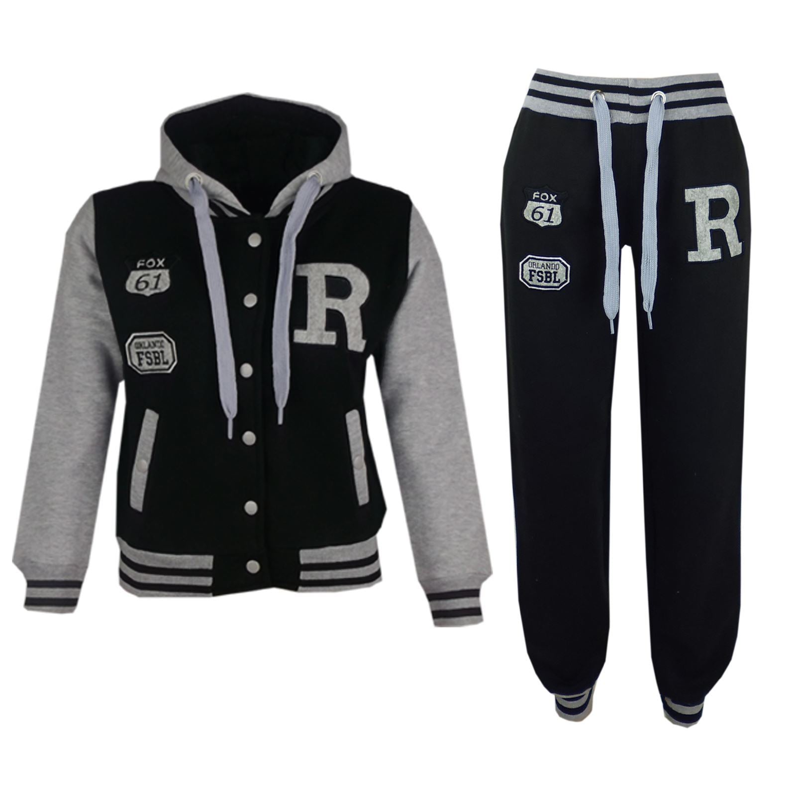 A2Z 4 Kids Girls Boys Black Baseball Tracksuit FOX Jacket & Trouser Sports Hoodie Bottom Joggers Age 2 3 4 5 6 7 8 9 10 11 12 13 Years
