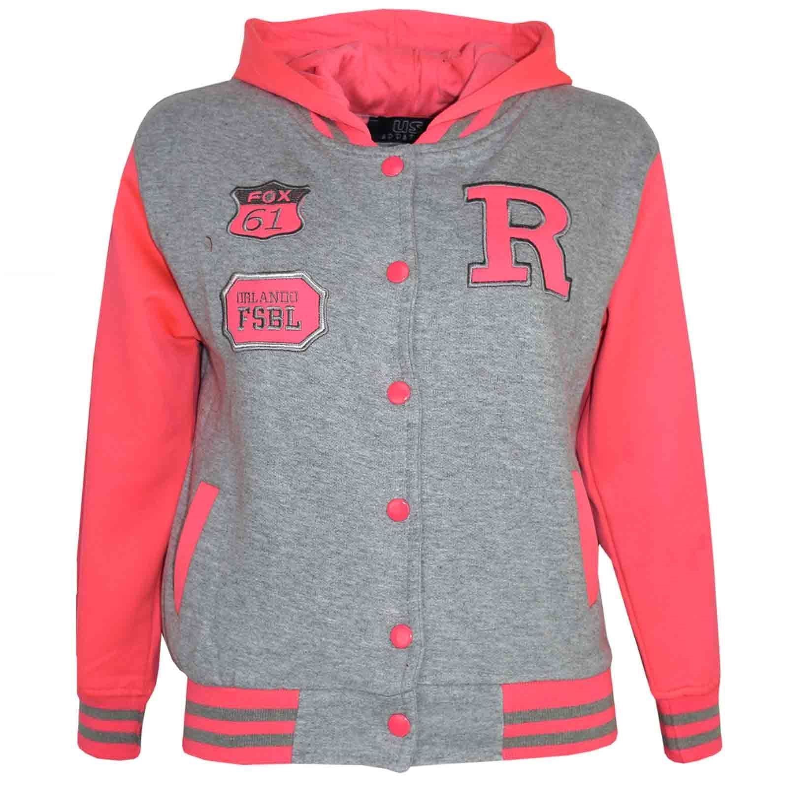 A2Z 4 Kids Girls Boys Grey & Neon Pink Baseball Tracksuit FOX Jacket & Trouser Sports Hoodie Bottom Joggers Age 2 3 4 5 6 7 8 9 10 11 12 13 Years