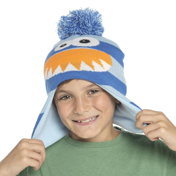 A2Z 4 Kids Girls Boys Hat Monster Bobble Pom Pom Beanie Earflap Winter Warm Hats