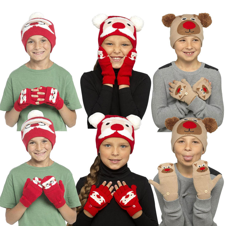 A2Z 4 Kids Girls Boys Hat Xmas Rudolph Santa Mitten Hats Winter Warm Gloves Sets