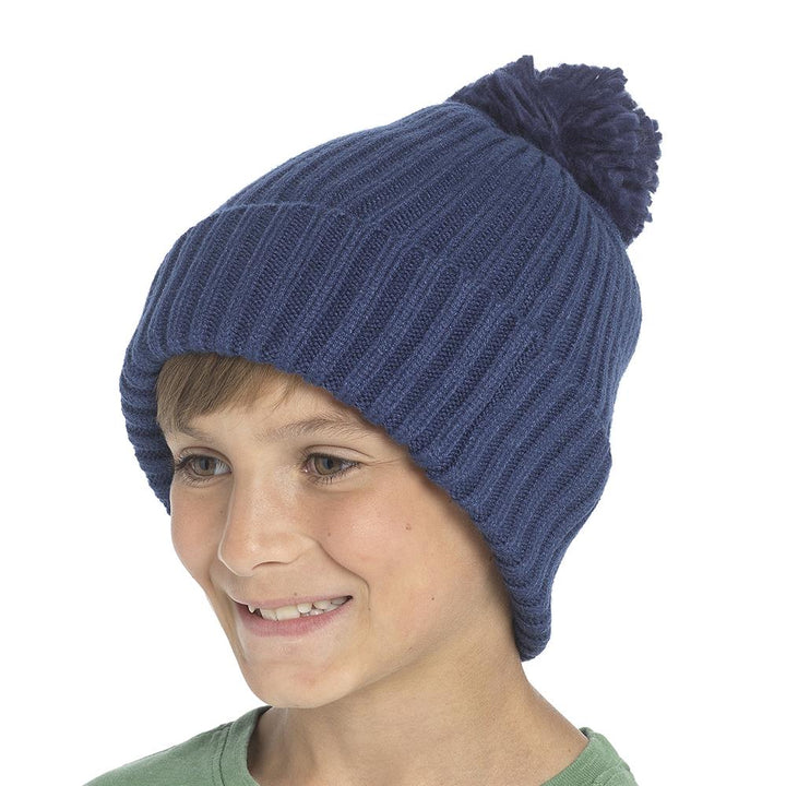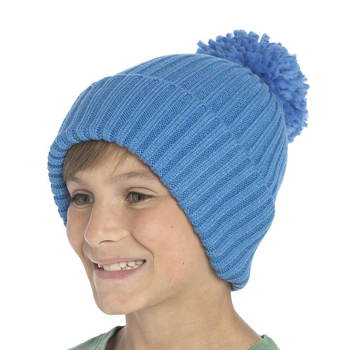 The Ribbed Knitted Bobble Pom Pom Beanie for girls and boys is a stylish accessory that is perfect for everyday wear. This beanie provides essential warmth and comfort during the colder winter months. Its versatile design allows it to coordinate easily with different clothing styles, ensuring that children stay cosy and fashionable during outings.