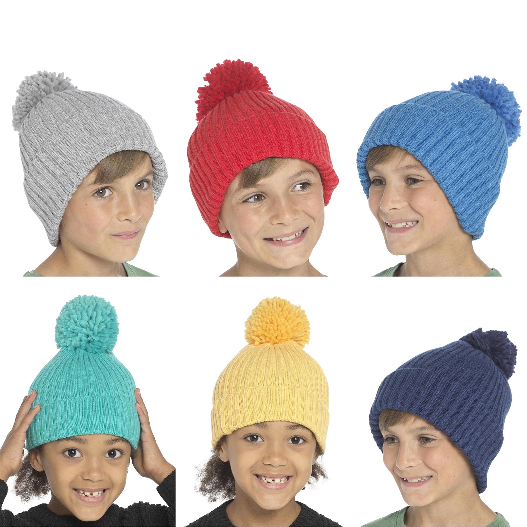 A2Z 4 Kids Girls Boys Hats Ribbed Bobble Pom Pom Beanie Winter Warm Cozy Caps
