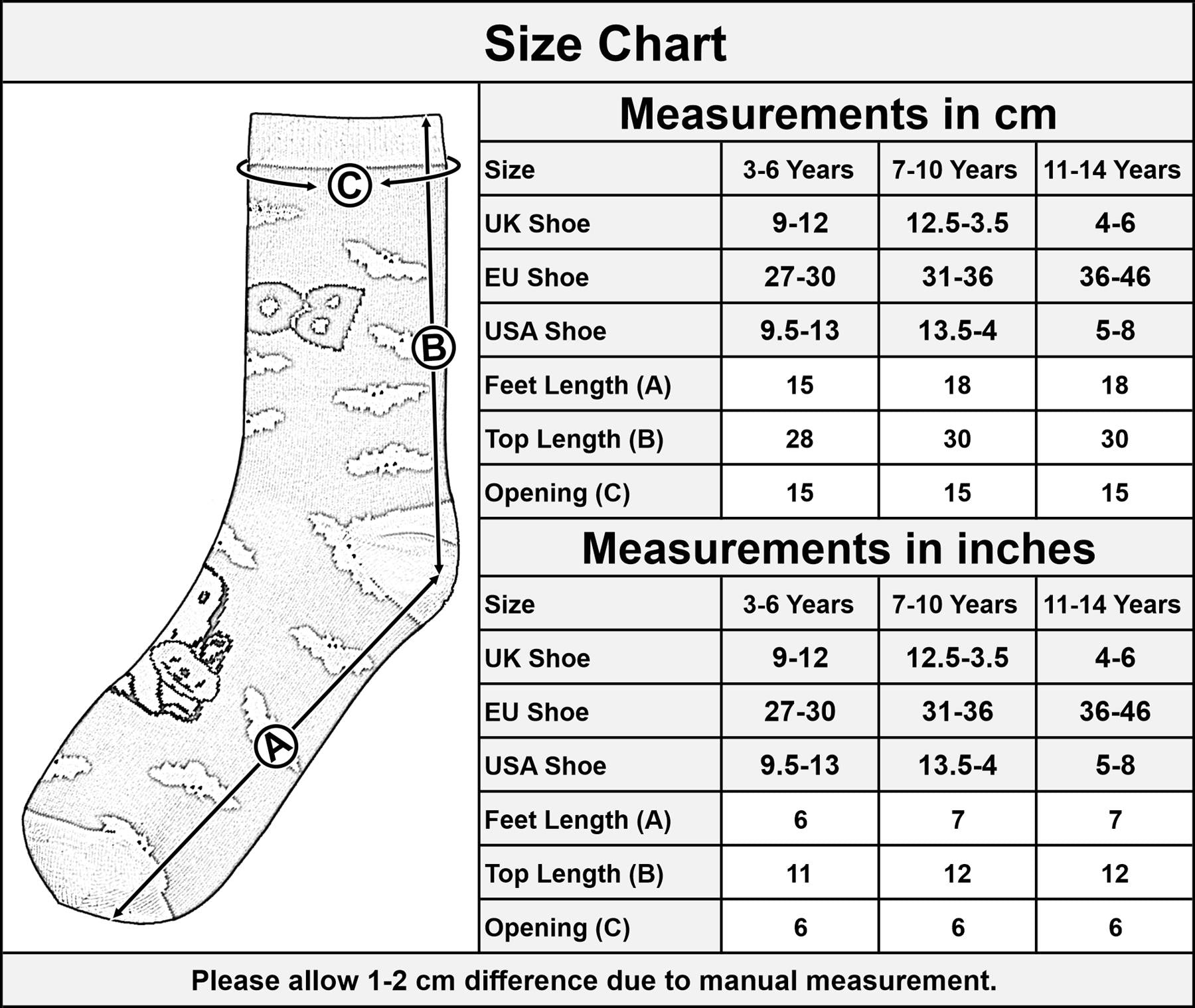 Crafted from a premium blend of 60% Cotton, 36% Polyester, 2% Lycra and 2% Nylon, these socks offer the ultimate comfort for your child's feet. The cotton ensures breathability, while the elastane adds a touch of stretch for a secure fit. Plus, the polyester enhances durability, ensuring these socks withstand the test of time. -