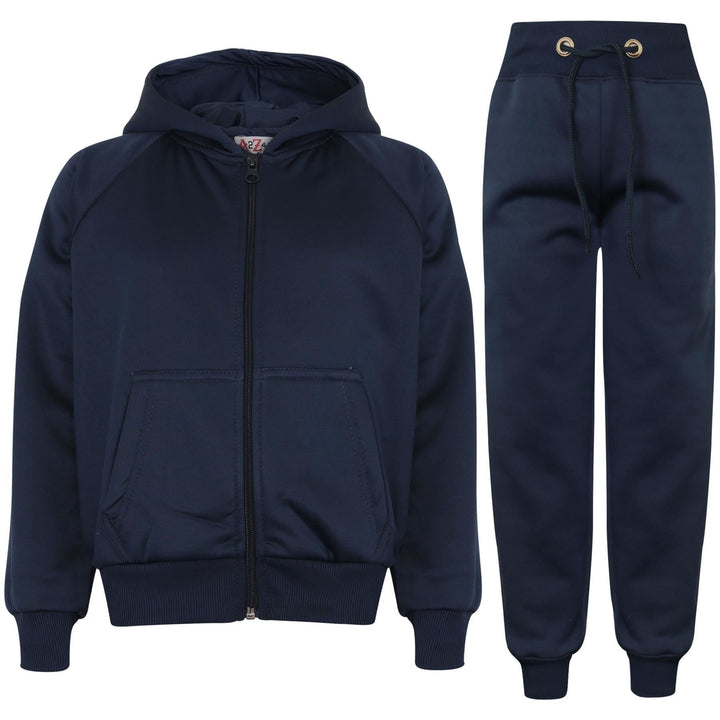 Kids Girls Boys Plain Tracksuit Cuffed Hoodie Casual Sweatpants Age 5-13