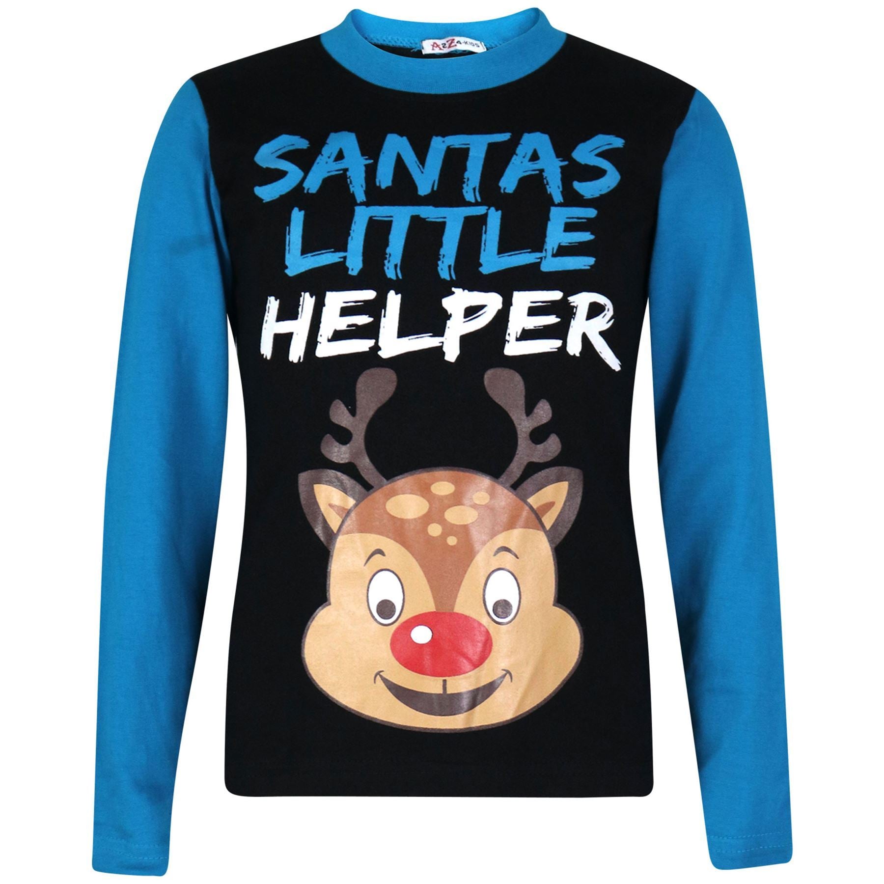 A2Z 4 Kids Girls Boys Pyjamas Santas Little Helper Reindeer Print Stylish Blue Contrast Sleeves Pajamas Xmas Set New Age 2 3 4 5 6 7 8 9 10 11 12 13 Years