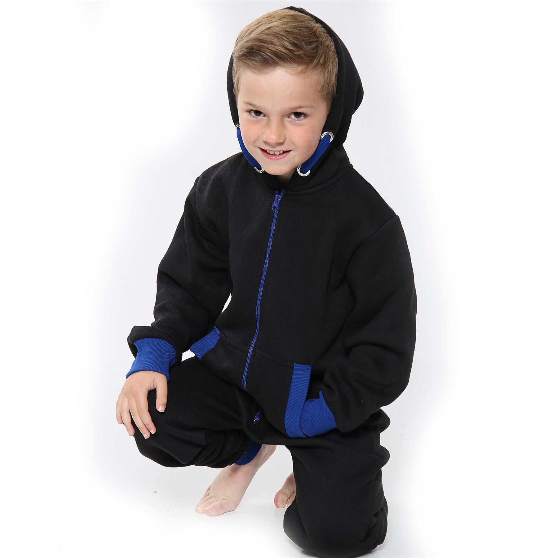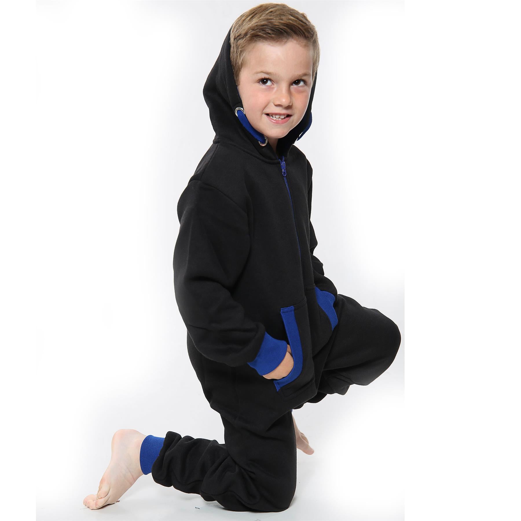 A2Z 4 Kids Girls Boys Royal Blue Contrast Fleece Onesie All In One Jumsuit Playsuit Nightwear New Age 2 3 4 5 6 7 8 9 10 11 12._13 Years