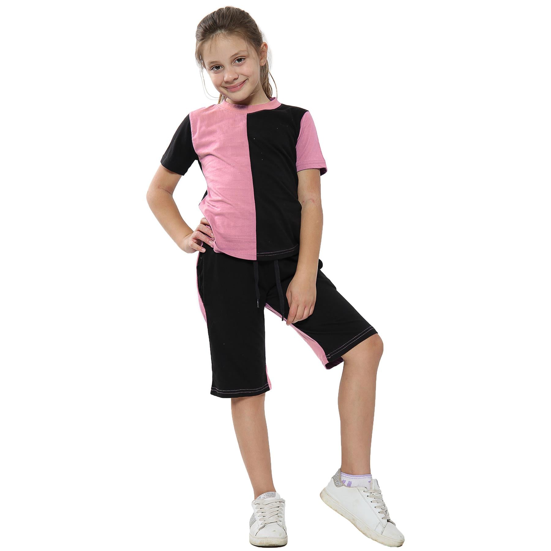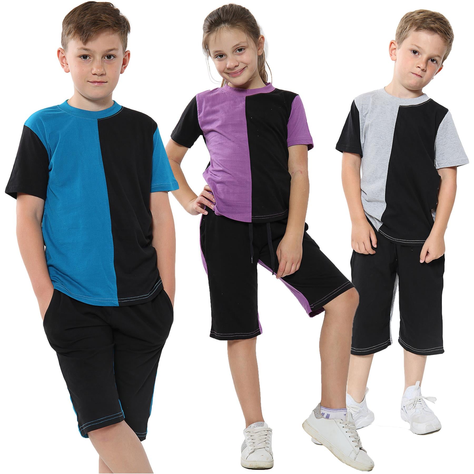 A2Z 4 Kids Girls Boys T-shirt Top Shorts Set 100% Cotton Contrast Panel Outfit