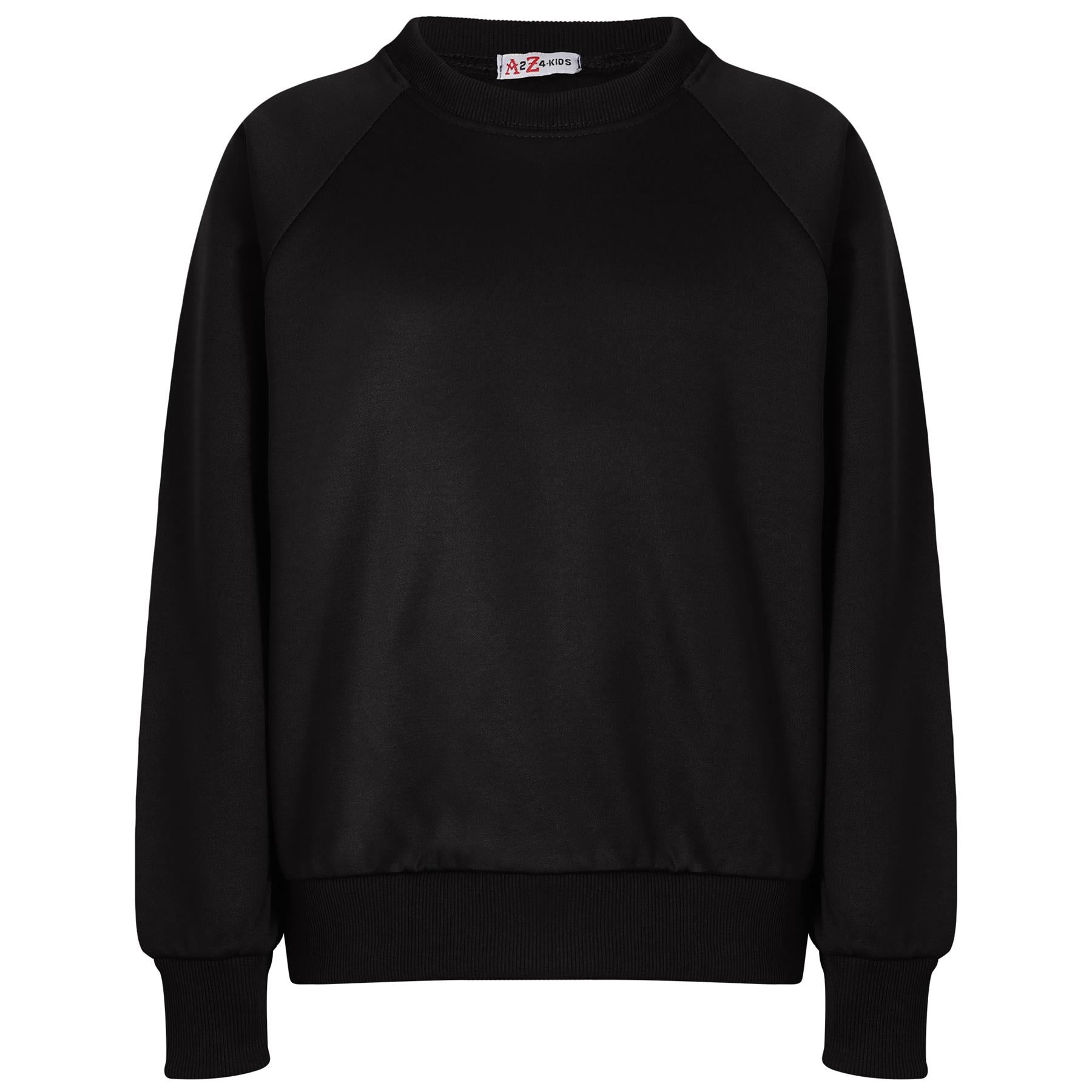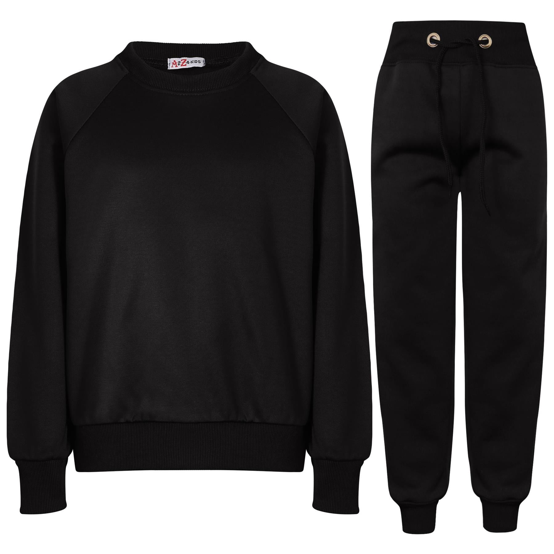 A2Z 4 Kids Girls Boys Unisex Plain Black Color Raglan Sleeves Fleece Tracksuit Jumper Sweatshirts & Bottom Jogging Suit Joggers Age 5 6 7 8 9 10 11 12 13 Years
